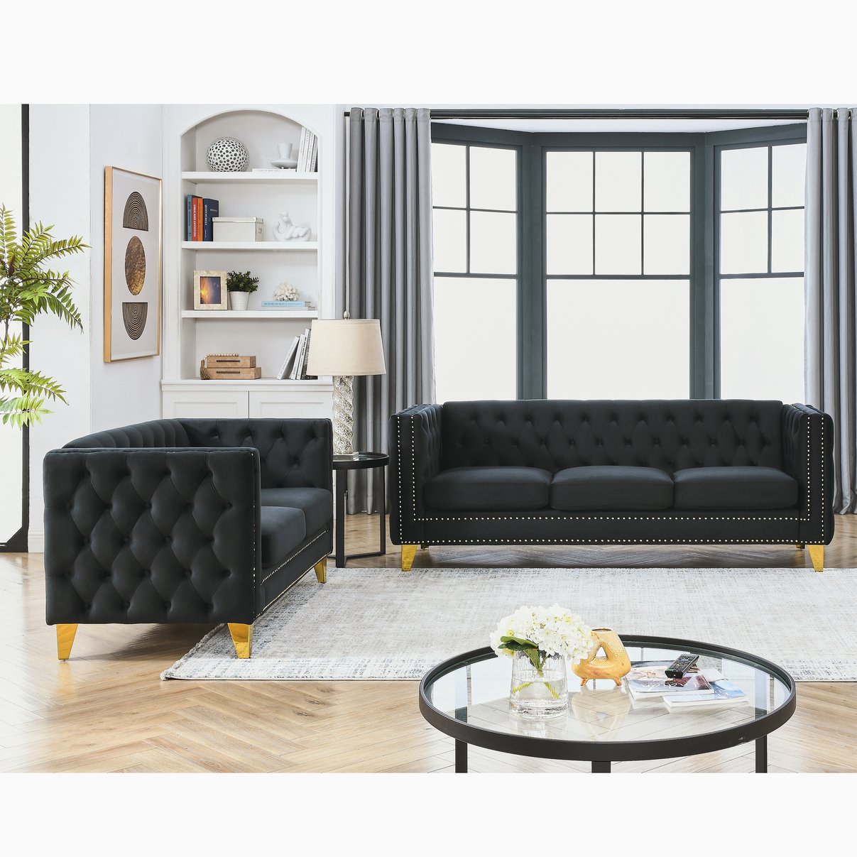 - Product type: 3‑seater + 2‑seater combination sofa (black velvet)