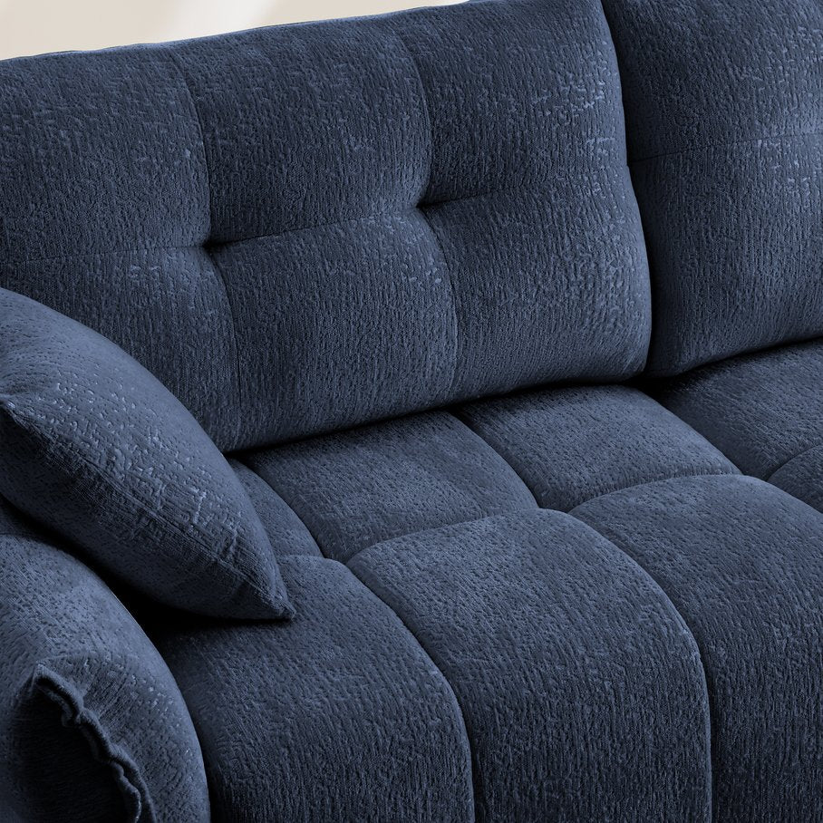 Elevate your living space with this elegant and versatile 3-seater sofa set, thoughtfully designed for comfort, durability, and style. Upholstered in textured blue chenille with tailored tufting and a solid wood frame, this set includes three matching ottomans and pillows, making it ideal for living rooms, lounges, offices, or hotel suites. Its modular nature and refined silhouette blend modern aesthetics with practical support for everyday use.