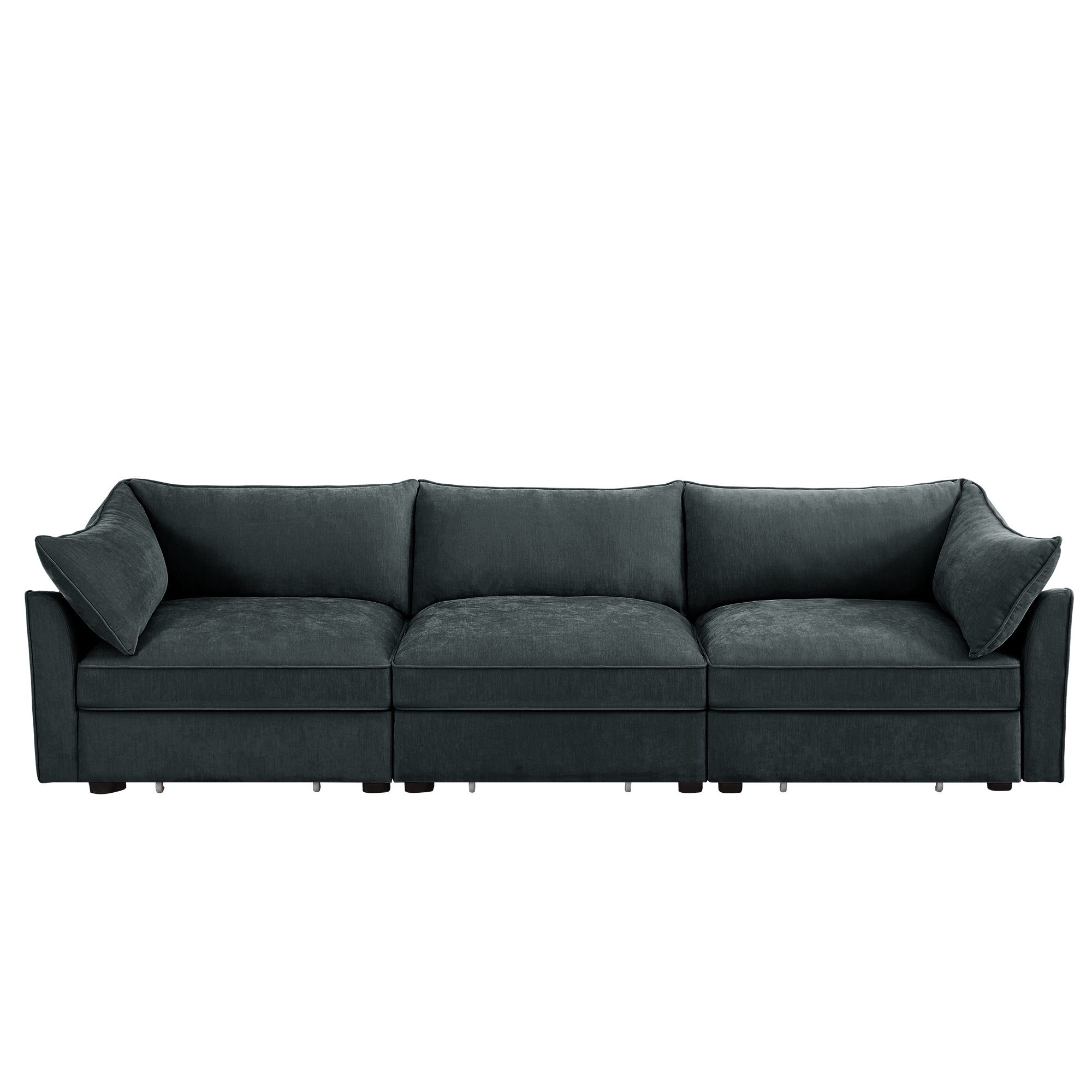 Upgrade your living room with a luxurious, highly functional 3-seater sofa that blends deep comfort with smart storage. Upholstered in soft chenille fabric and designed with wrapped-around cushions and refined piping details, this sofa delivers a stylish focal point while solving everyday clutter with three discreet pull-out drawers—one beneath each seat.