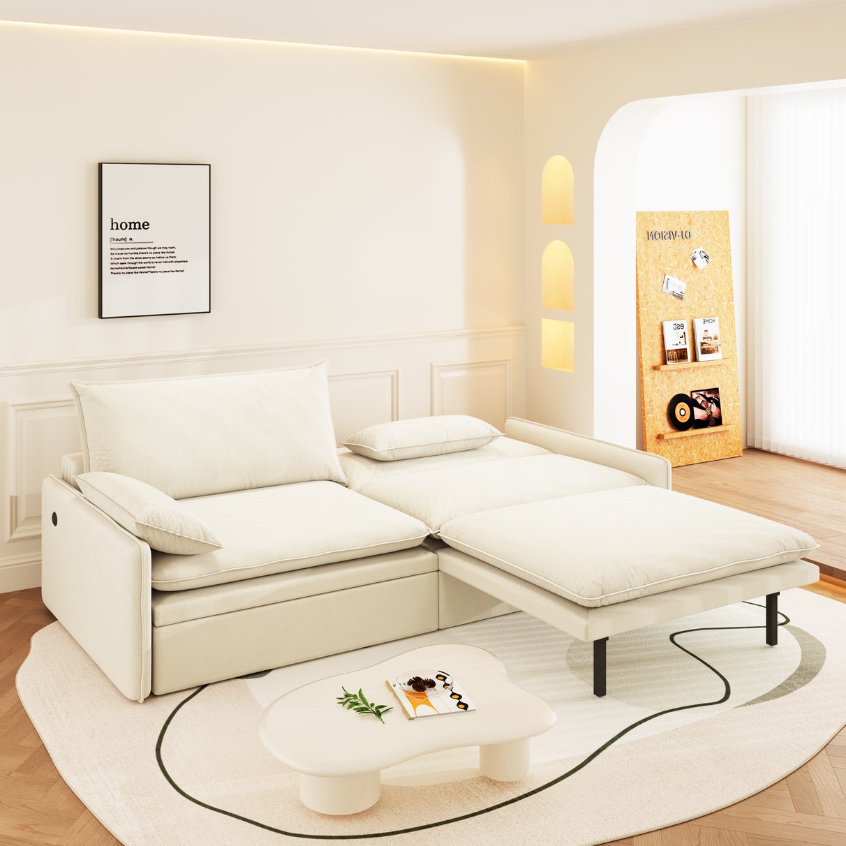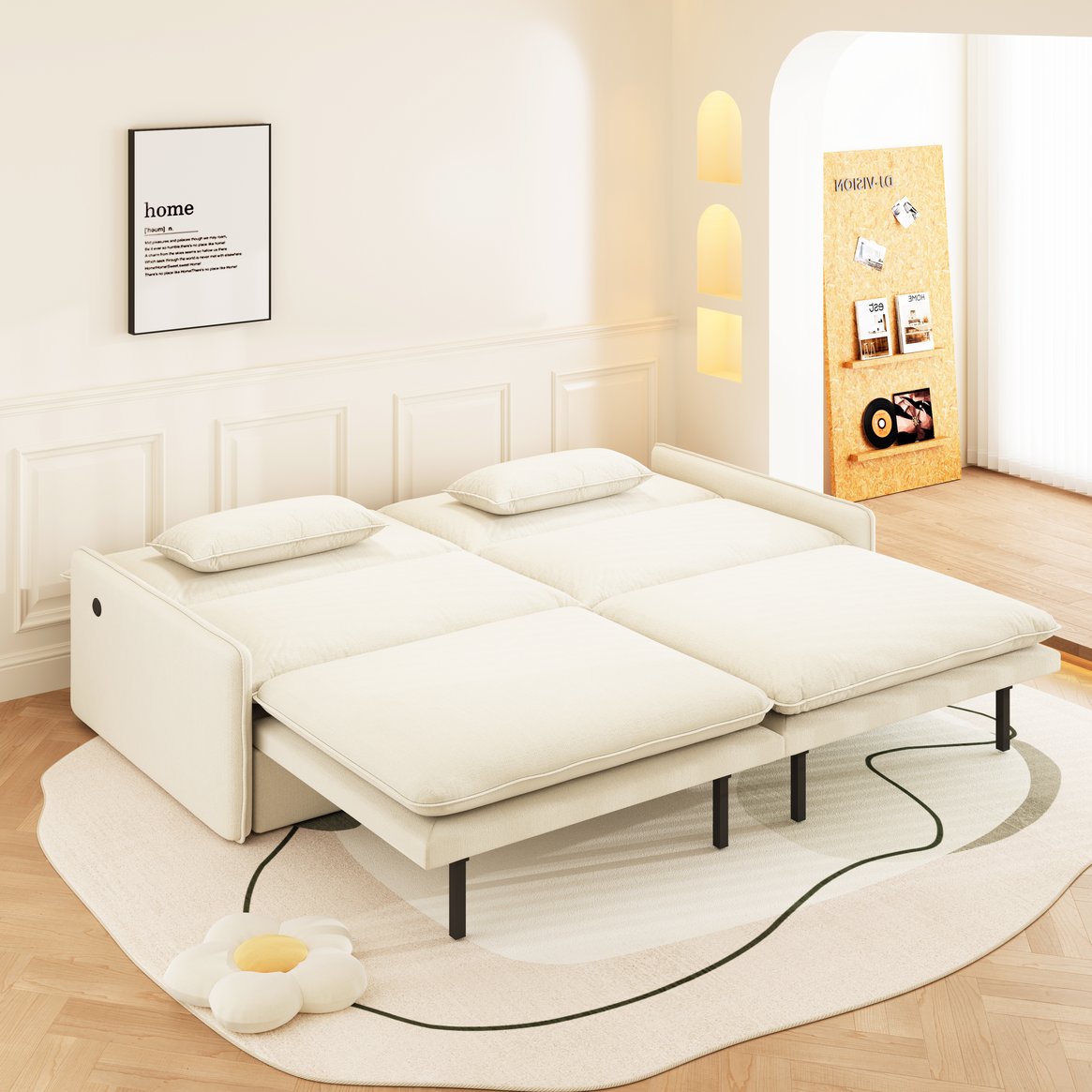 Transform your living space with this versatile 4-seat convertible sleeper sofa that blends modern styling, functional storage, and thoughtful conveniences. Upholstered in soft chenille with deep cushions and a 2-in-1 pillow design, it easily converts from a comfortable sofa to a spacious sleeper—ideal for living rooms, apartments, or guest bedrooms. Built-in USB charging and under-seat storage make it a practical choice for everyday living and overnight guests.