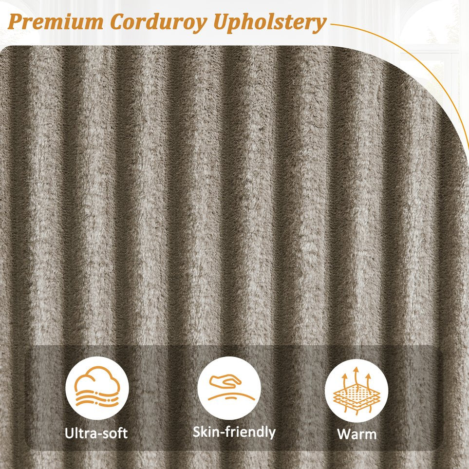 - Premium Corduroy Upholstery - Wrapped in soft, textured corduroy fabric, the sofa delivers a tactile richness and a warm, inviting aesthetic. Known for its durability and comfort, corduroy adds a touch of timeless elegance to any contemporary or casual living space.