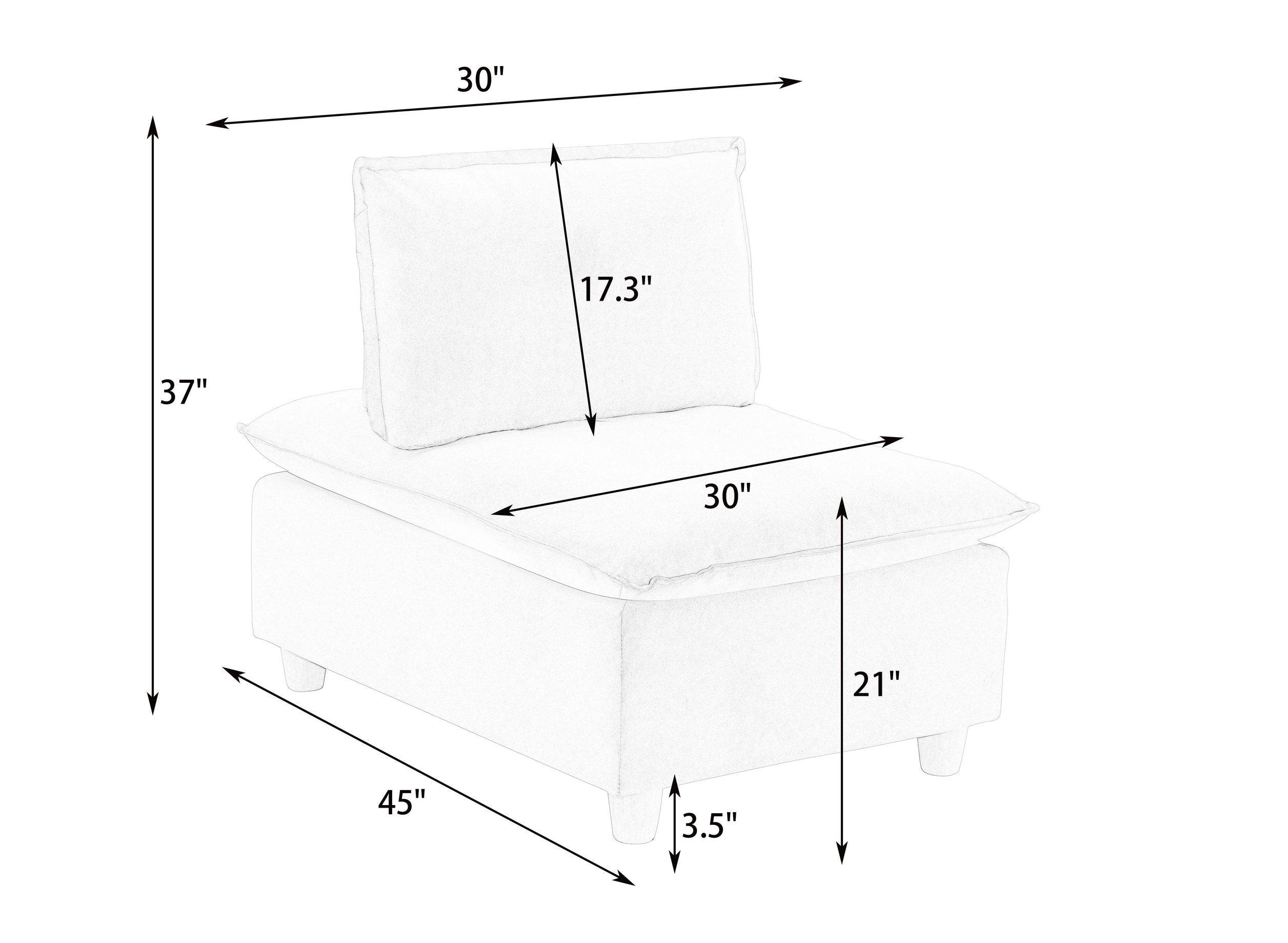 - Dimensions: Sofa size 44.29" L × 45.27" W × 36.61" H. (Cartons: A — 40.55" × 29.52" × 11.02"; B — 40.94" × 14.56" × 14.17")