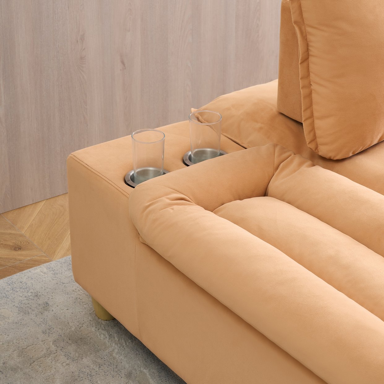 - The sofa has a simple design with a single storage cabinet, which meets the storage needs of the living room. The storage cabinet can be moved at any time, which is both convenient and beautiful. The sofa also has two cup holders. You can work leisurely on the sofa or keep some snacks for watching shows.