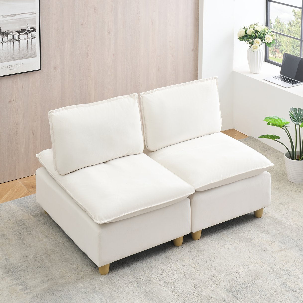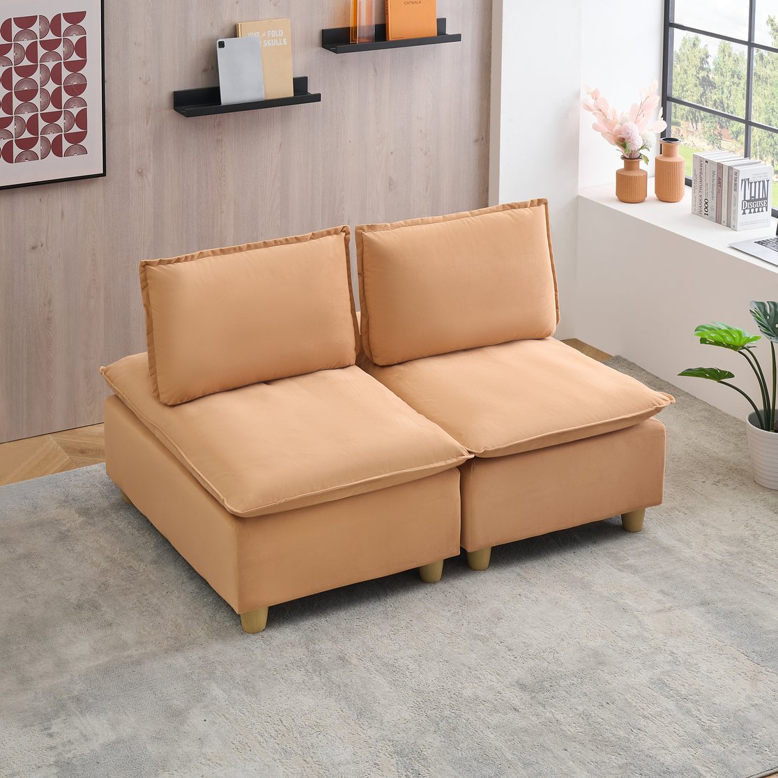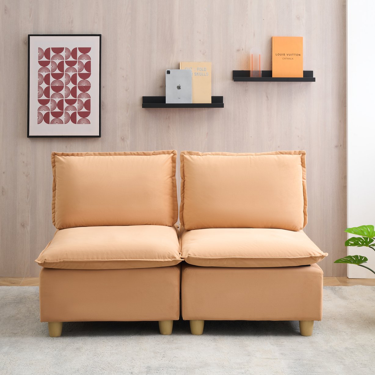 Enjoy refined comfort with this minimalist two-seat sofa, crafted for small living rooms and balconies. Its soft beige flannelette upholstery and streamlined straight-row silhouette create an inviting, modern focal point that balances durability with cozy, everyday use. Built on a solid wood and wood-based panel frame with S-spring seat support, it offers sturdy seating and a familiar homey look that complements neutral and contemporary interiors.