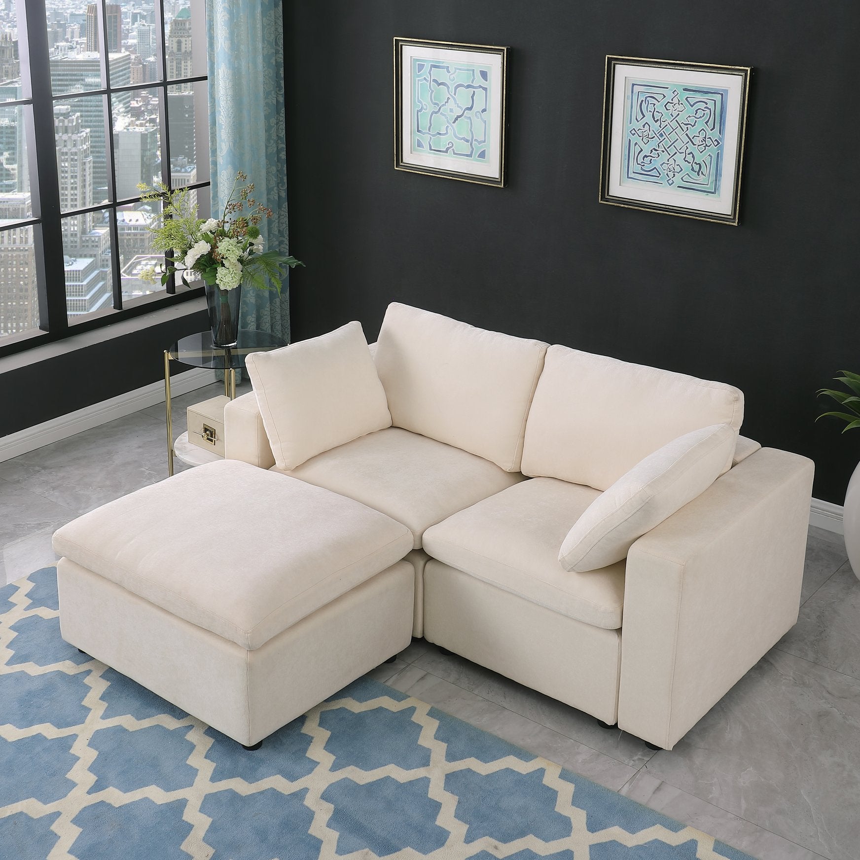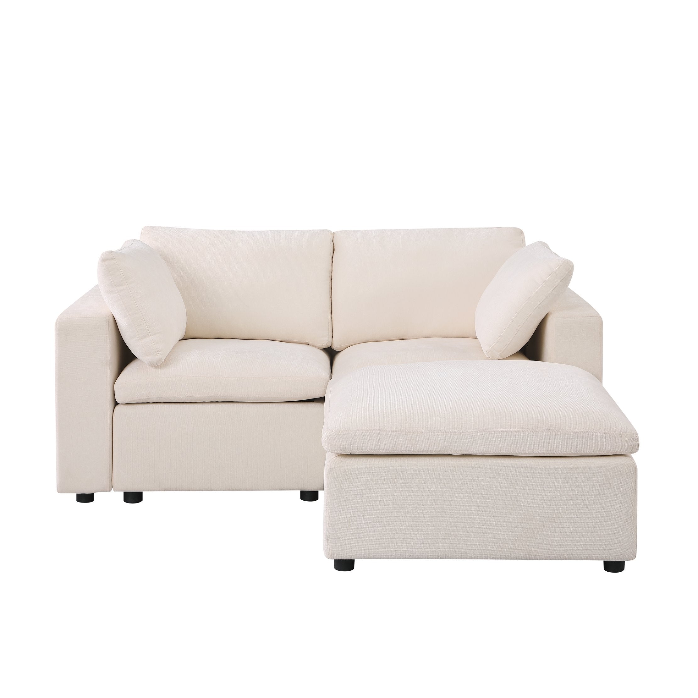 Compact yet comfortable, this modular loveseat and ottoman set combines modern lines with practical flexibility — ideal for apartments, small living rooms, or as a versatile seating solution in larger spaces. Upholstered in soft beige chenille, the sectional offers supportive comfort through high-resilience foam and a spring-reinforced seat, while its movable modules let you adapt the configuration to suit lounging, entertaining, or napping needs.
