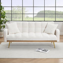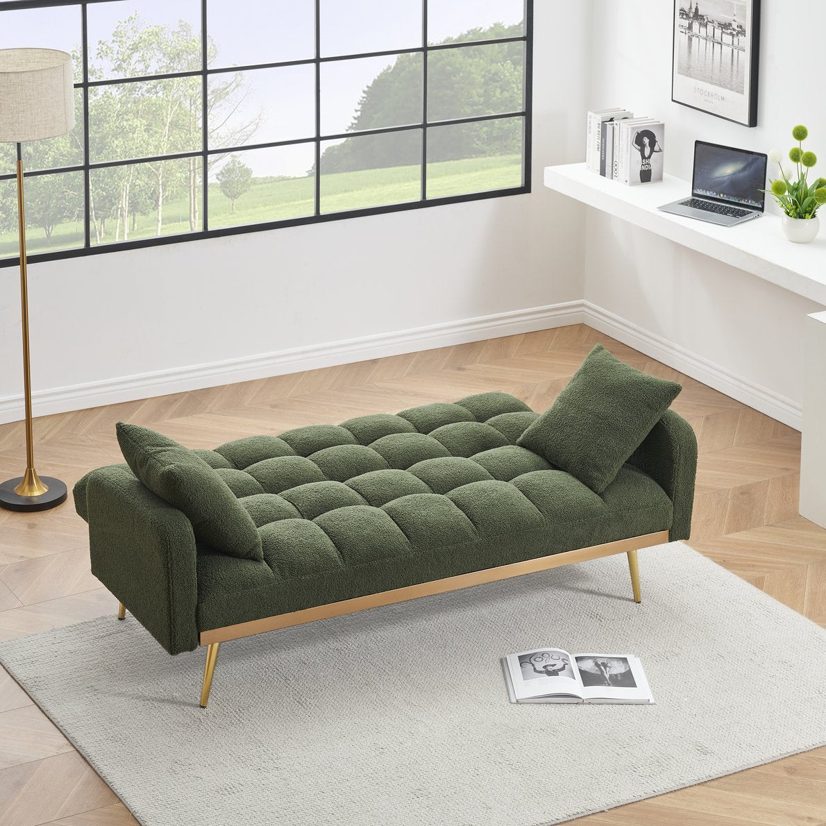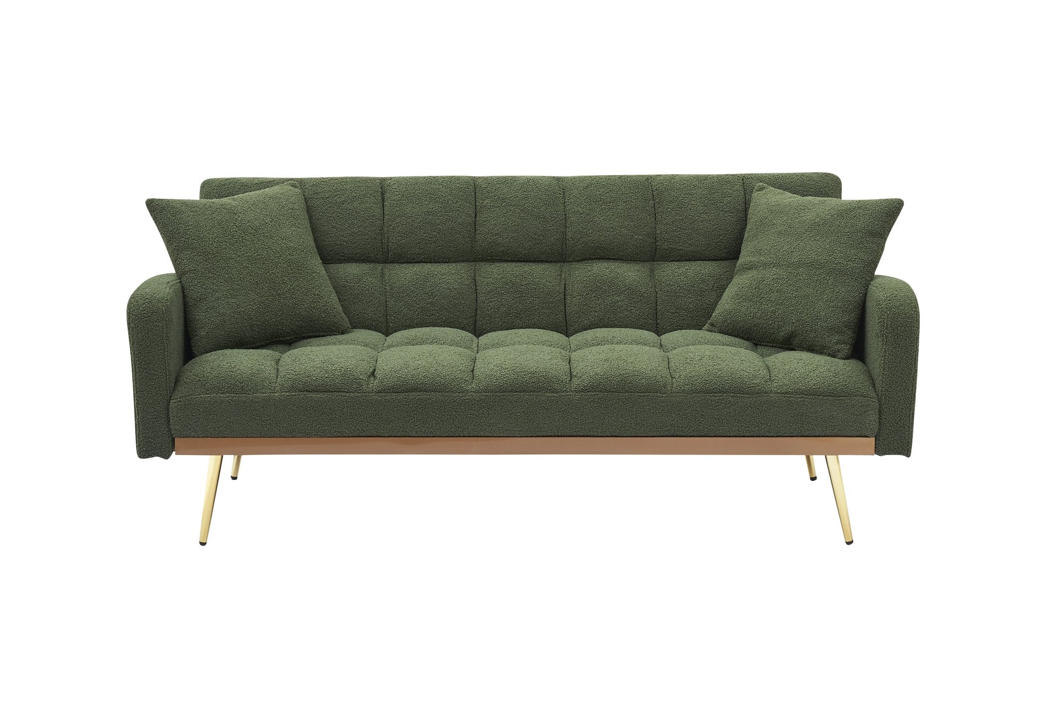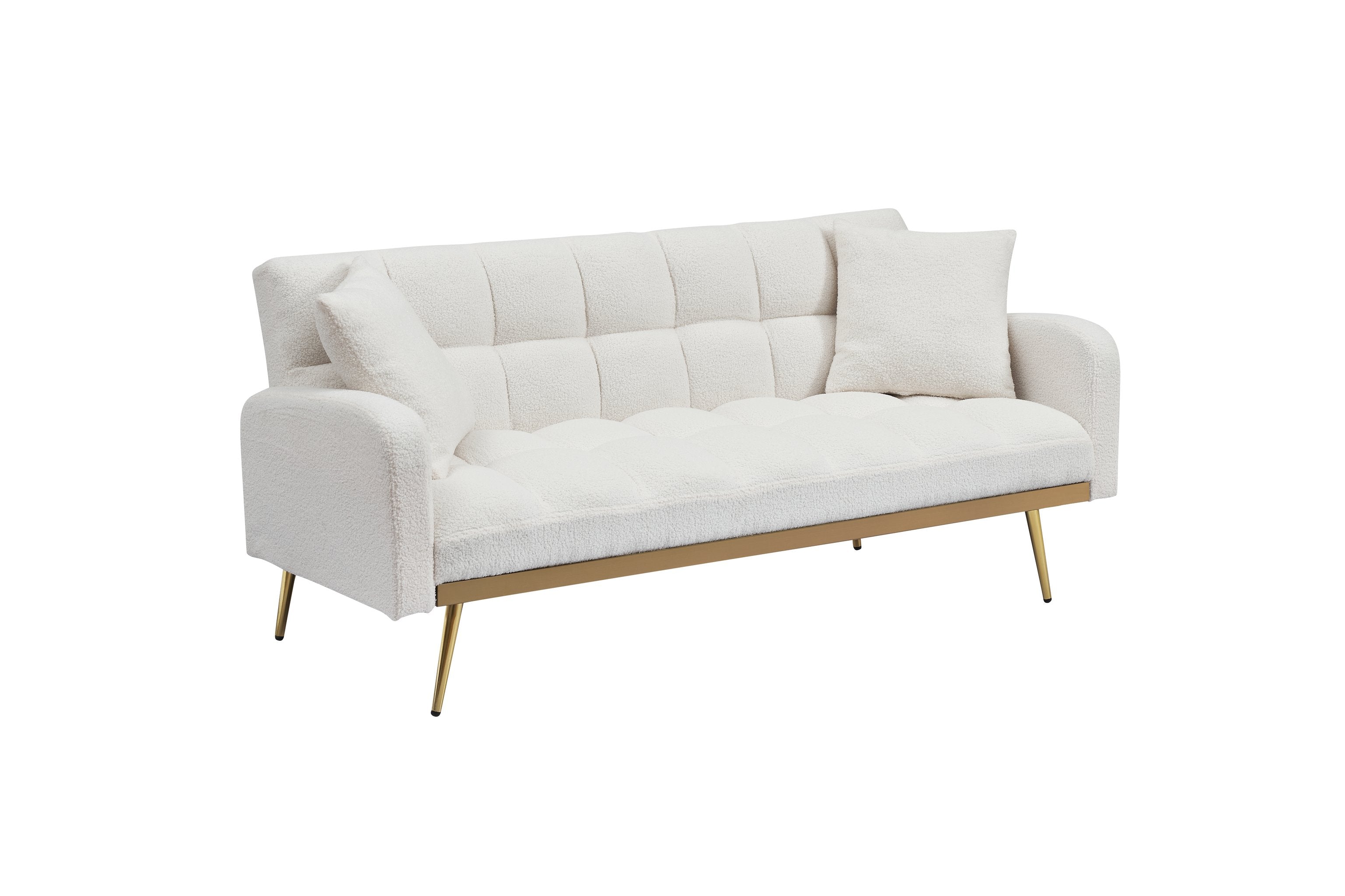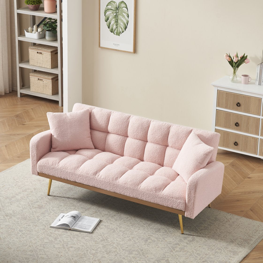 A versatile sofa bed designed for small-space living, this 69-inch adjustable teddy sofa combines comfortable seating with a convenient sleeper function. Upholstered in soft fabric and filled with supportive sponge, it offers a cozy spot for lounging, entertaining, or accommodating overnight guests. Durable construction and thoughtful details—like S-spring seating, solid wood framing, and included throw pillows—make it a practical, stylish addition to living rooms, studios, or guest rooms.