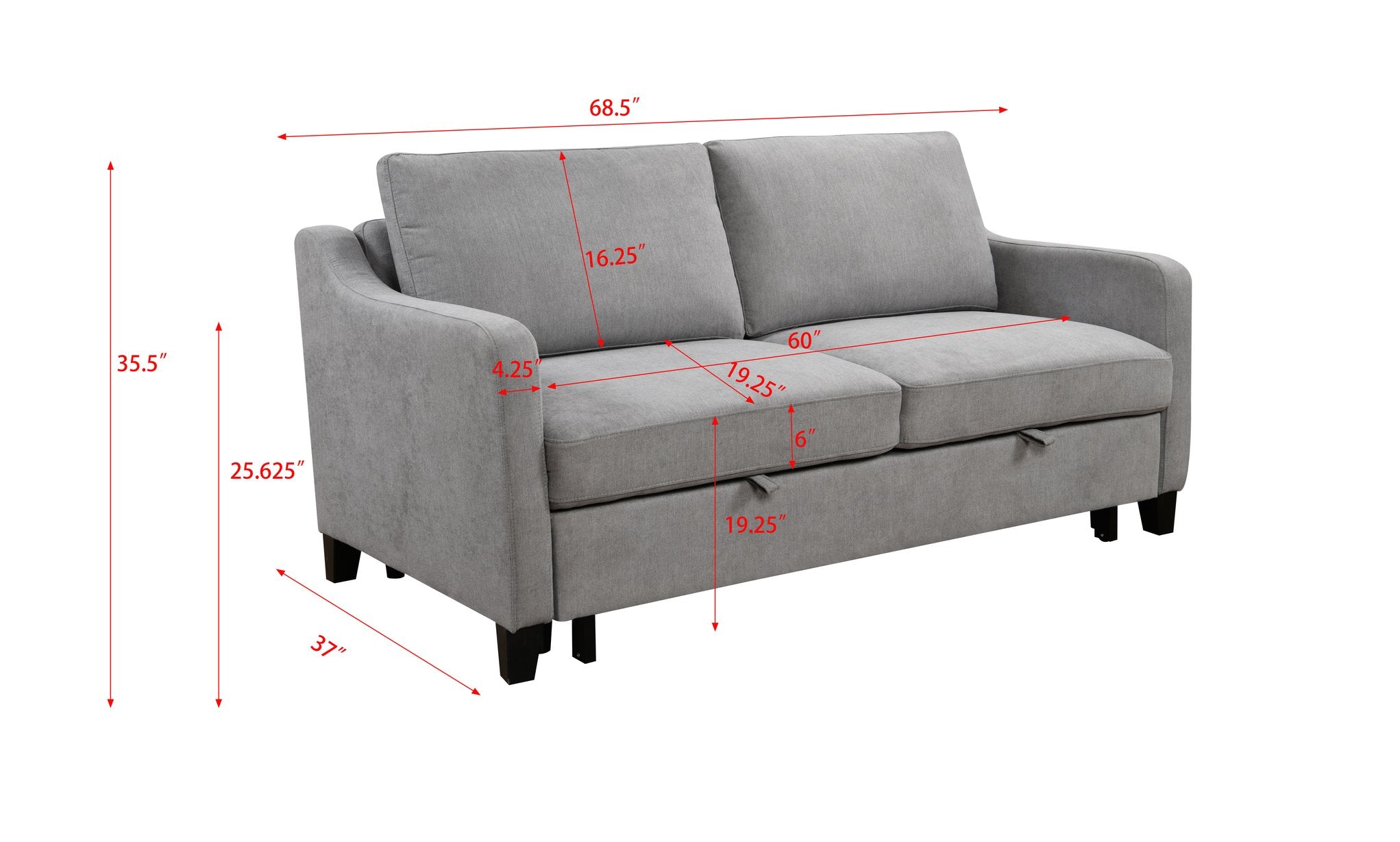 - CONVERTIBLE PULL-OUT SOFA BED:This sofa is equipped with a pull-out bed, which can be pulled out with 2 auxiliary hand straps to easily and quickly convert the loveseat into a chaise longue or a sleeping bed. Not only can it meet your needs for watching TV, playing games, or taking a break, but it can also provide a place to stay for overnight friends. It is very practical for a limited small space.