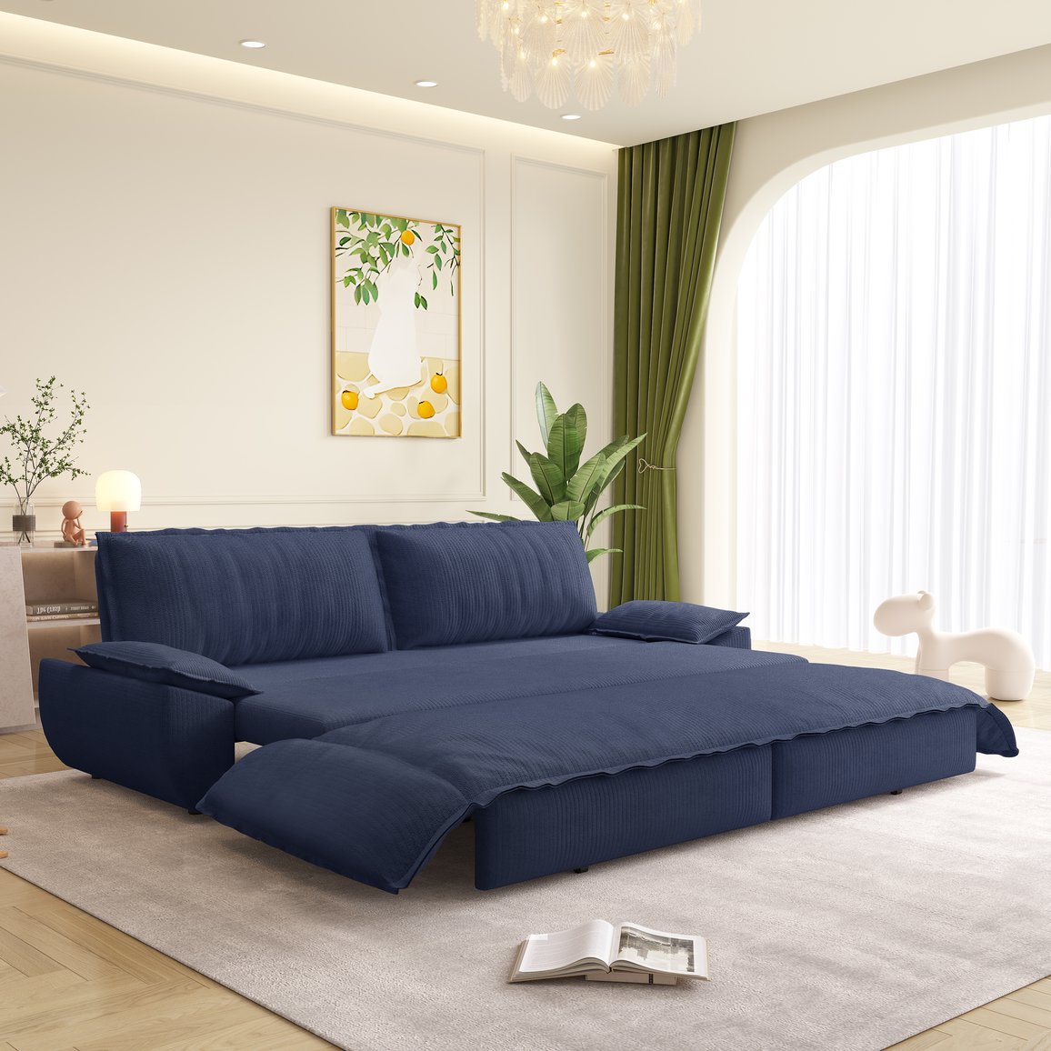 Upgrade your living space with this versatile 3-in-1 convertible sofa bed that combines modern style, everyday comfort, and practical functionality. Upholstered in soft corduroy and built on a sturdy iron and plywood frame, this compact queen pull-out sleeper easily transforms from a cozy loveseat to a full-size bed, making it ideal for small apartments, guest rooms, or multi-use spaces.