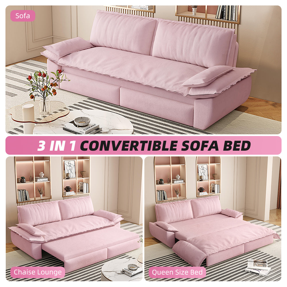 - 3-in-1 Convertible Sleeper Sofa Bed: Pull out the bed frame under the seat. There are two length options. When it is not fully pulled out, it becomes a chaise sofa, and when it is fully pulled out, this sofa can quickly turn into a Queen-size bed for resting.