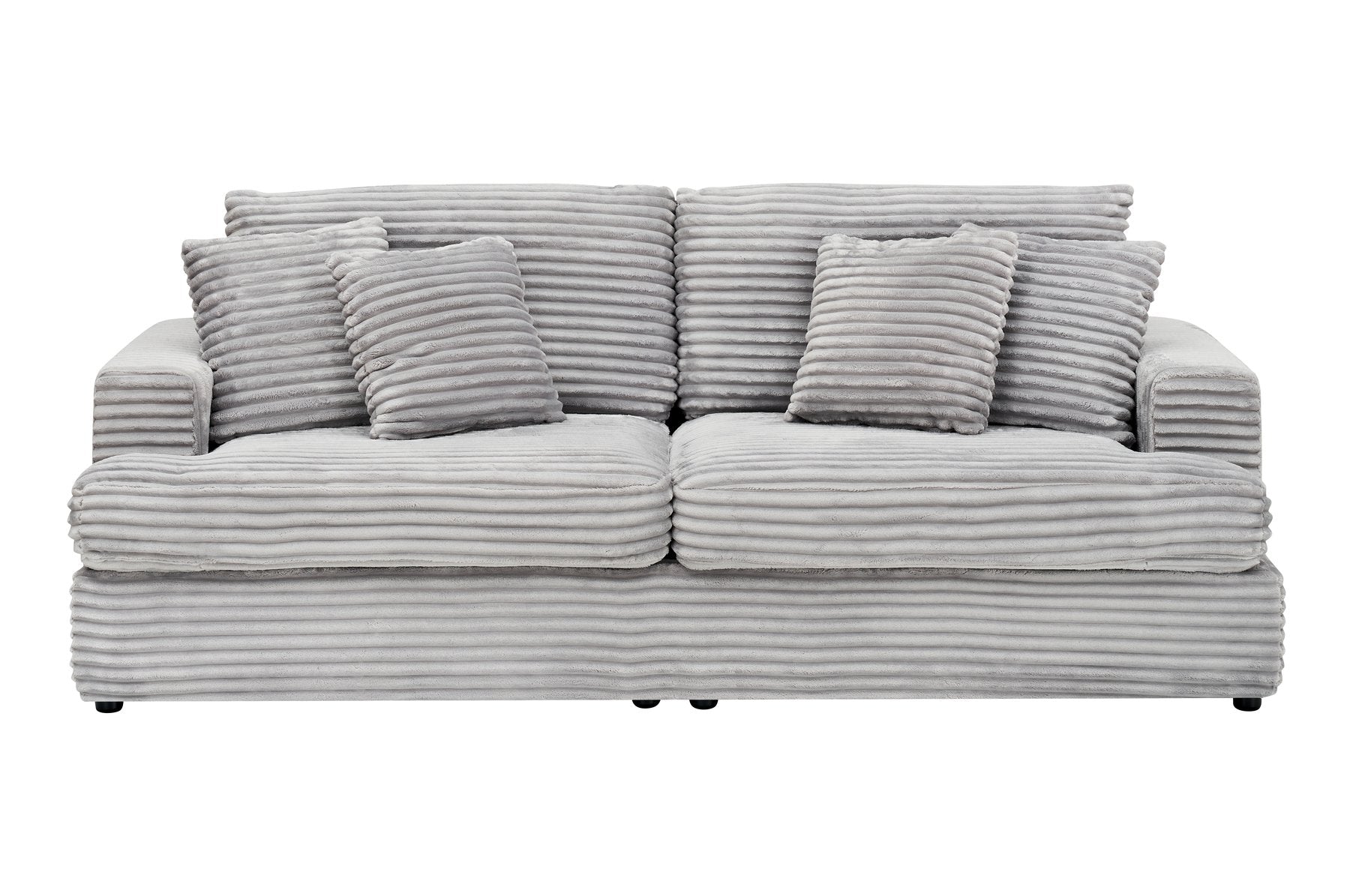 Upgrade your living space with this sleek, modern 3-seater corduroy sofa — designed for comfort, durability, and style. Soft corduroy upholstery and supportive sponge cushions create a cozy seating experience for relaxing, entertaining, or working from home. Clean lines and a neutral gray finish make it easy to coordinate with contemporary or transitional décor, while the included toss pillows add instant comfort and visual interest.