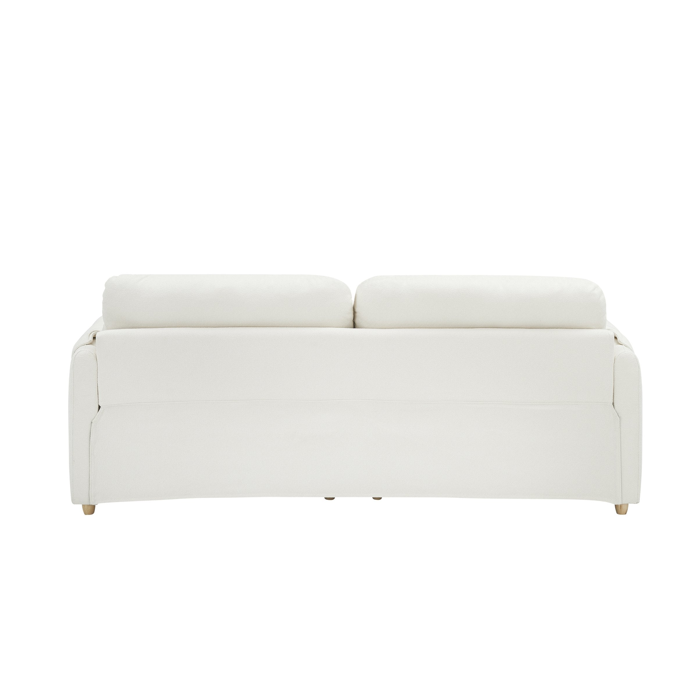 Bring understated elegance and cozy comfort to your living room with this modern 3-seater sofa. Upholstered in soft Teddy cotton-linen and supported by sleek conical metal legs and a matching metal trim, it blends contemporary lines with durable construction for everyday family use or stylish entertaining.
