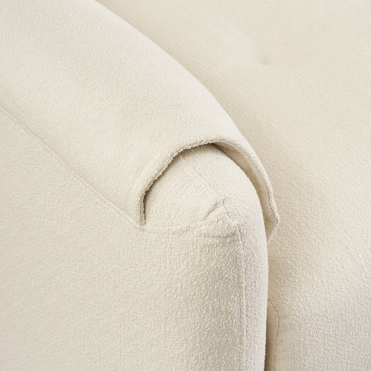 - Upholstery: Plush Teddy cotton-linen fabric for a soft handfeel and a refined textured appearance; available in beige, black, and grey.