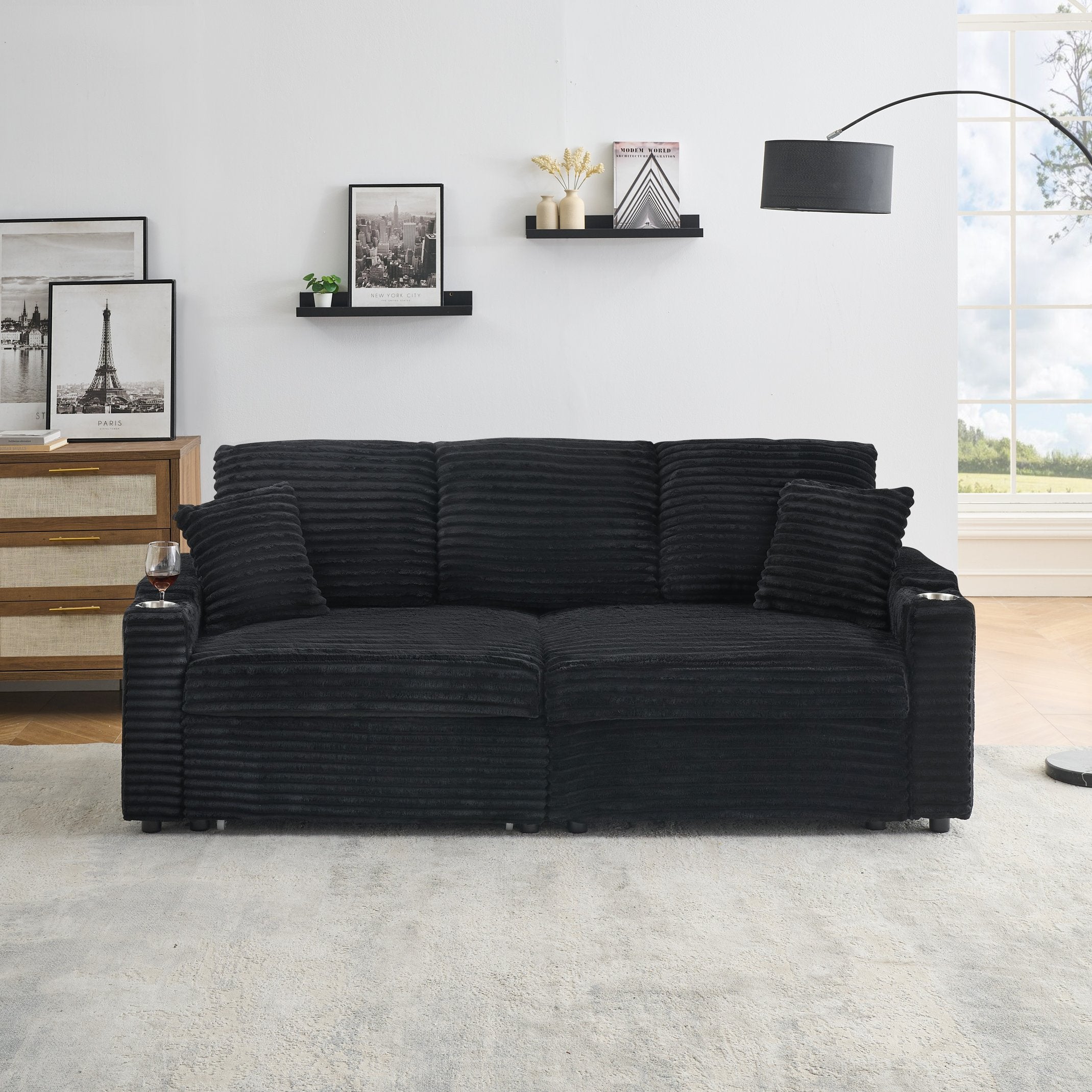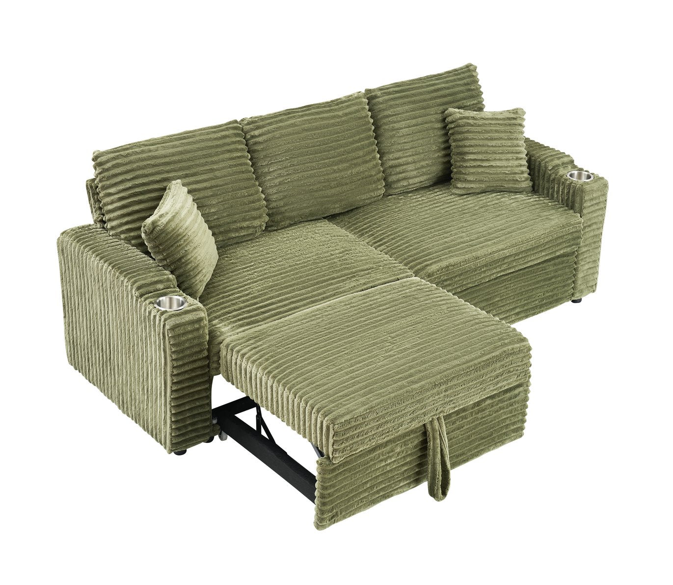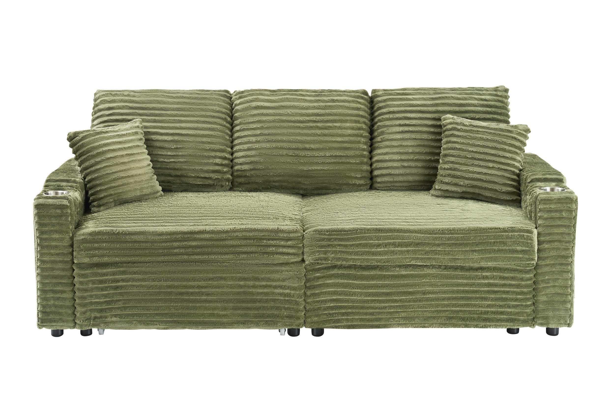 Transform your living room with this versatile 80-inch two-in-one folding sofa — a stylish, space-saving piece that converts effortlessly between seating and a hidden lying function. Upholstered in soft corduroy and finished in a calming green, it comes with two pillows and built-in cup holders for everyday comfort and convenience. Robust construction and supportive cushioning make it ideal for family rooms, apartments, or guest spaces.