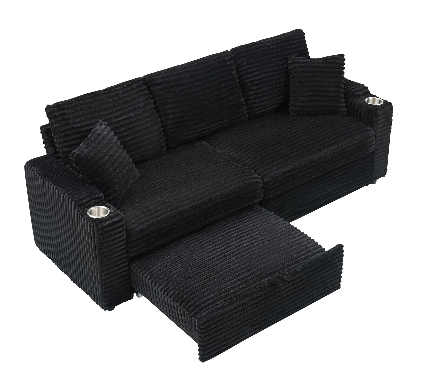 - Crafted from corduroy, the sofa's surface resembles a layer of fine, plush down feathers, tenderly embracing every inch of your skin. Its sleek contours exude elegance, while the sumptuous texture offers a velvety-soft touch, promising a luxurious and indulgent seating experience.