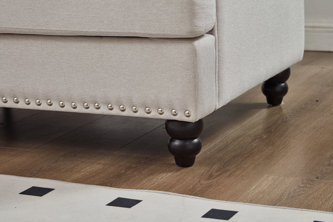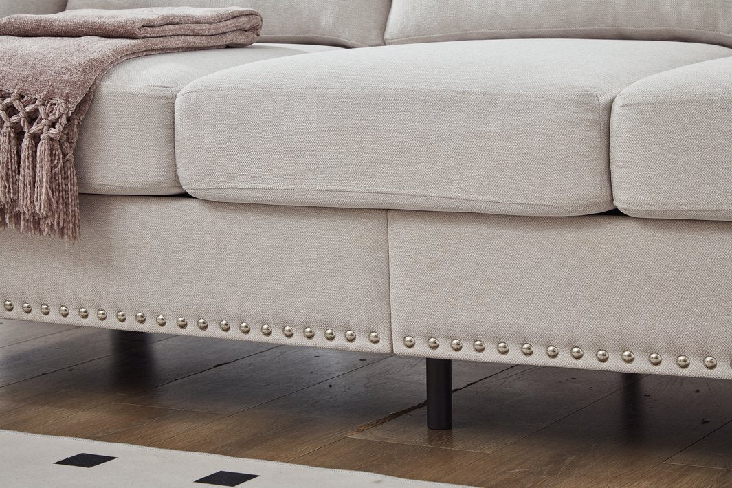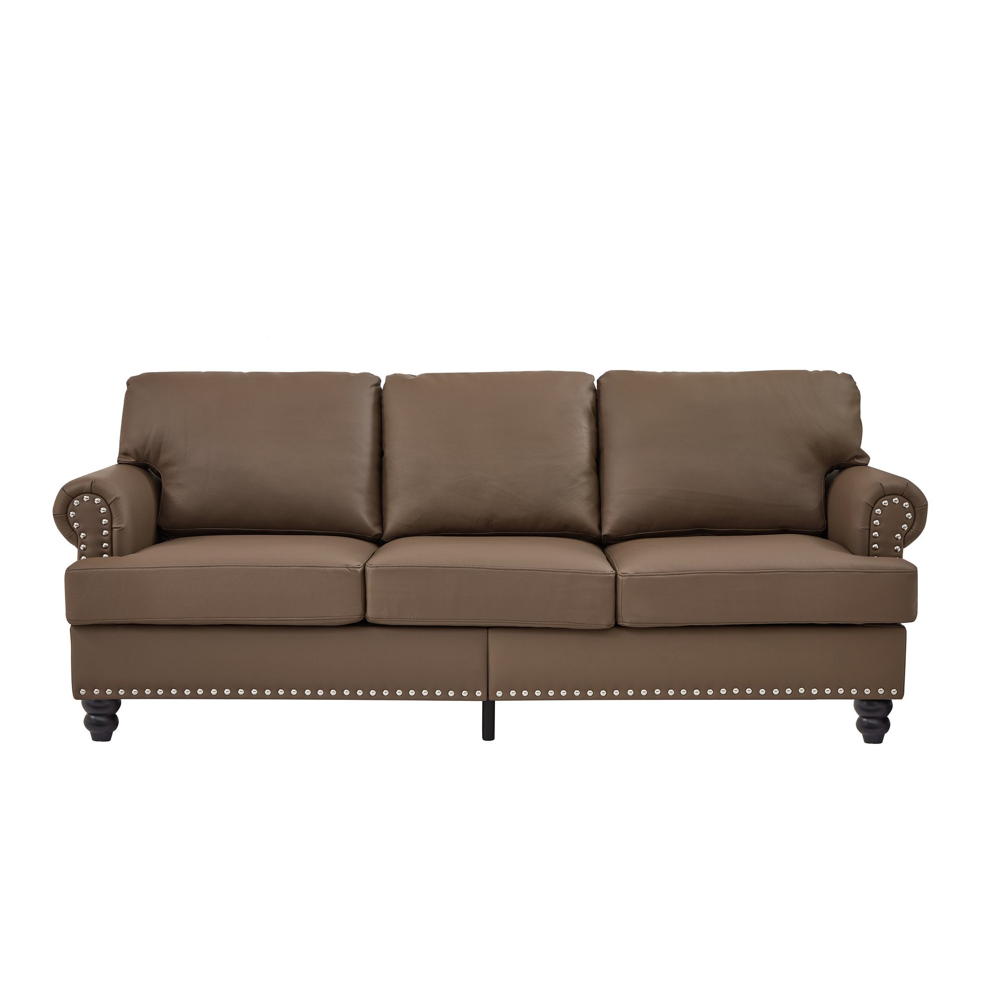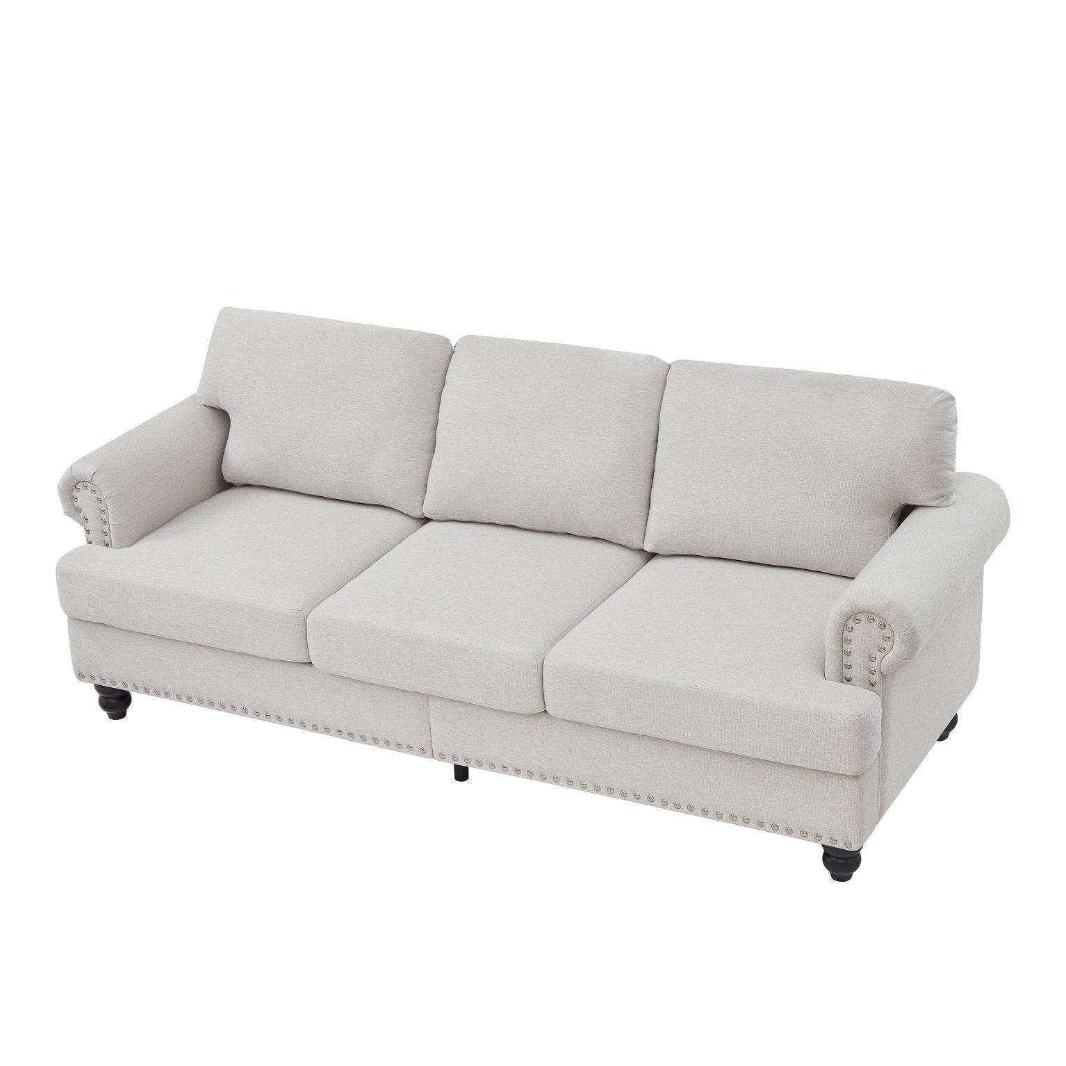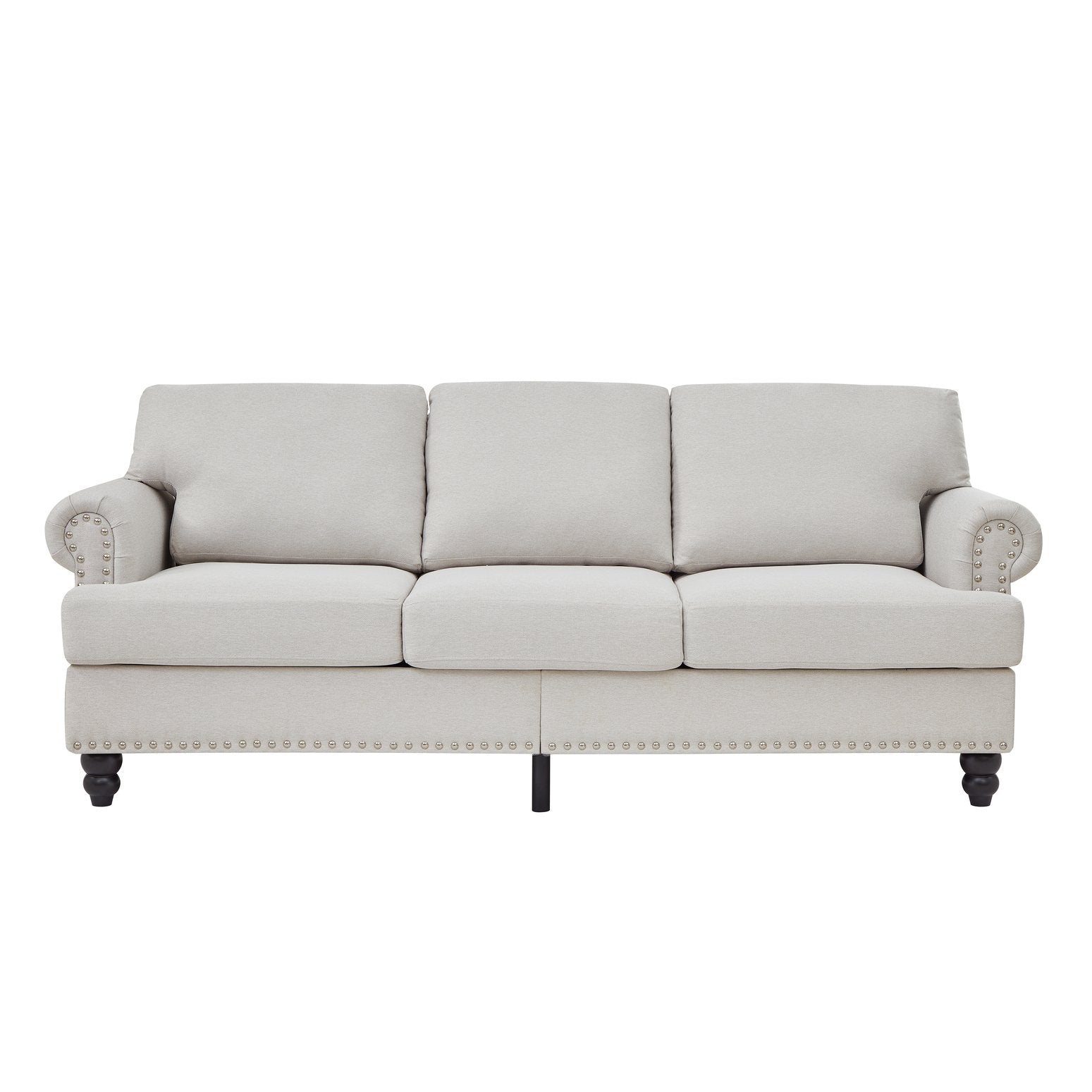 Give your living room a refined update with this 83" three-seater sofa that blends modern and classic design cues. Upholstered in durable beige polyester with clean lines, rounded arms, and nailhead detailing, it delivers comfortable seating for everyday use while offering built-in storage and a sturdy hardwood frame for long-lasting performance.