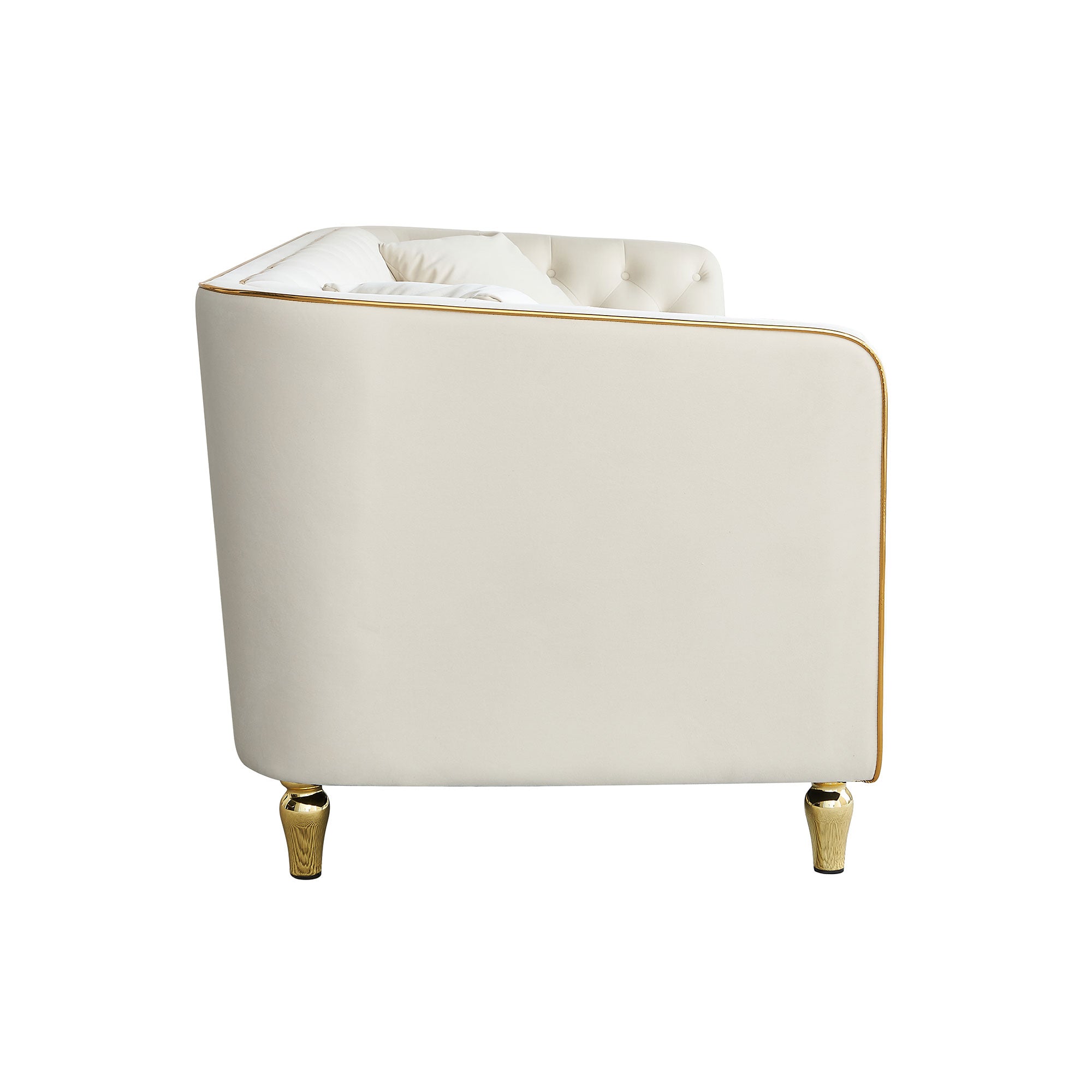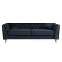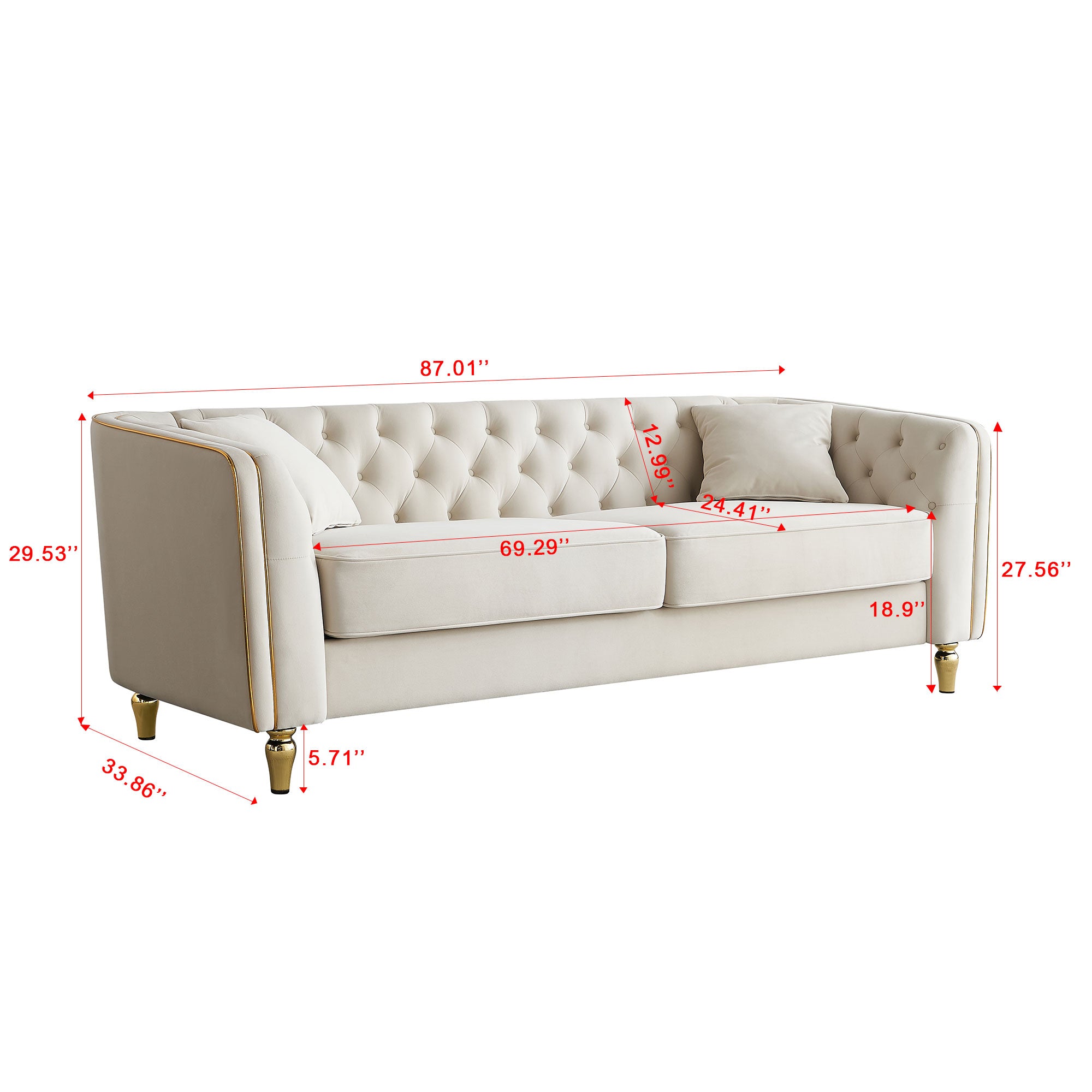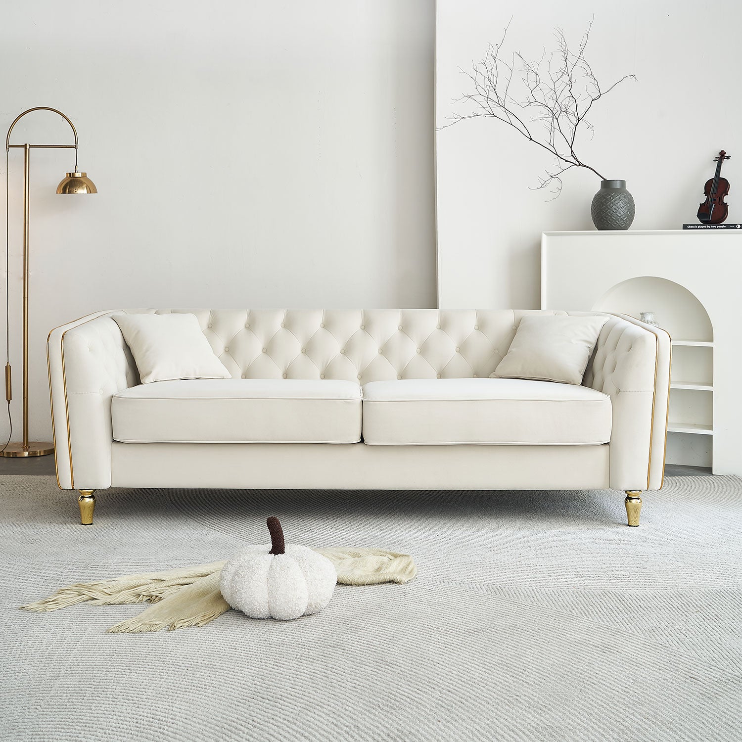 Experience contemporary elegance and everyday comfort with this modern tufted velvet sofa. Its button-tufted back, sleek silhouette, and gold metal legs create a refined focal point ideal for living rooms, hotel suites, apartments, or offices. Thoughtfully designed to blend style with support, it elevates your space while providing a cozy spot for relaxation.