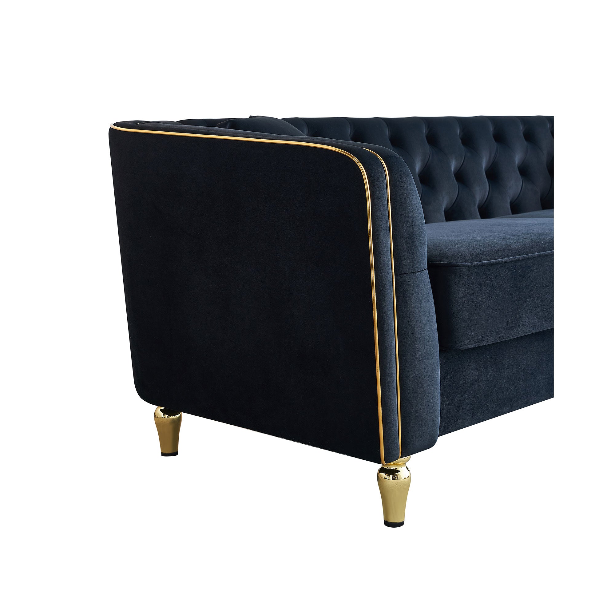 - Our velvet couch features velvet button tufting along the front of sofa. The golden decorative strip extend the overall sofa,looks more gorgeous.