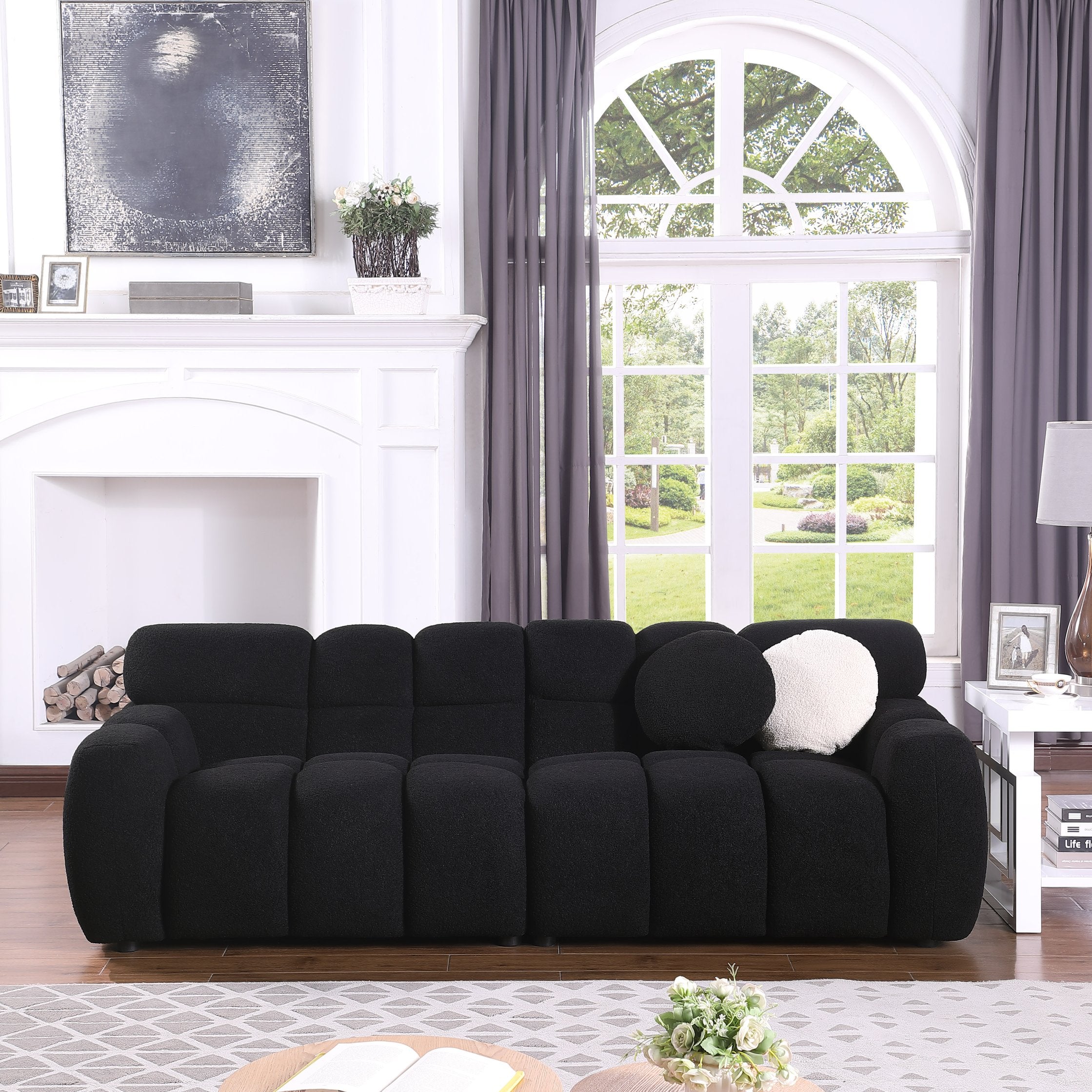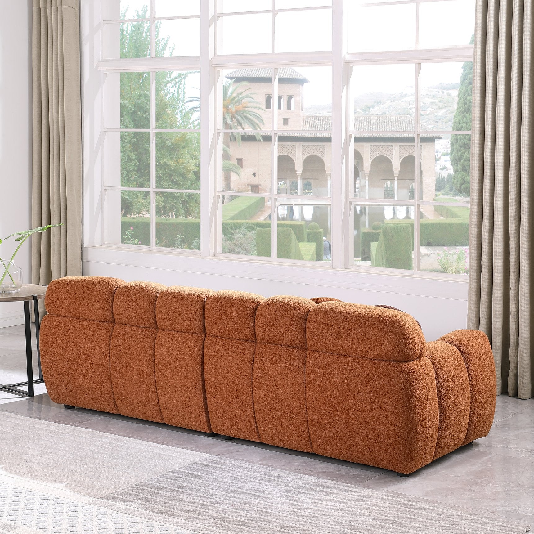 Bring warm, contemporary comfort into your living space with this marshmallow-style 3-seater boucle sofa. Designed with soft, pillowy contours and a human-centered silhouette, it blends sculptural form with everyday functionality—ideal for small spaces, apartments, or modern living rooms seeking a cozy yet refined focal point. High-quality materials and careful craftsmanship ensure durable support and lasting style.
