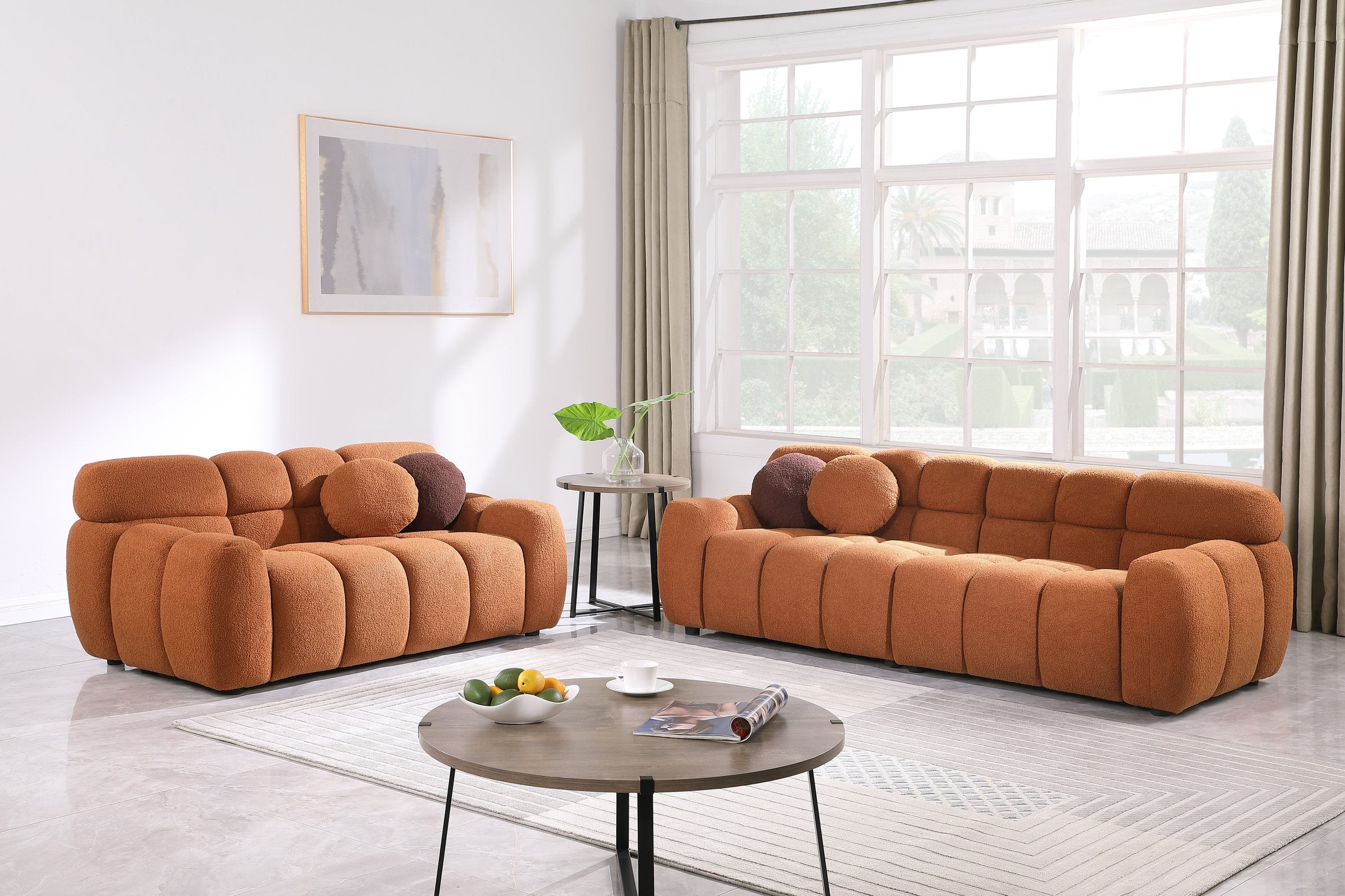 - 87.4 length ,35.83" deepth ,human body structure for USA people, marshmallow sofa,boucle sofa LIGHT BROWN color,3 seater