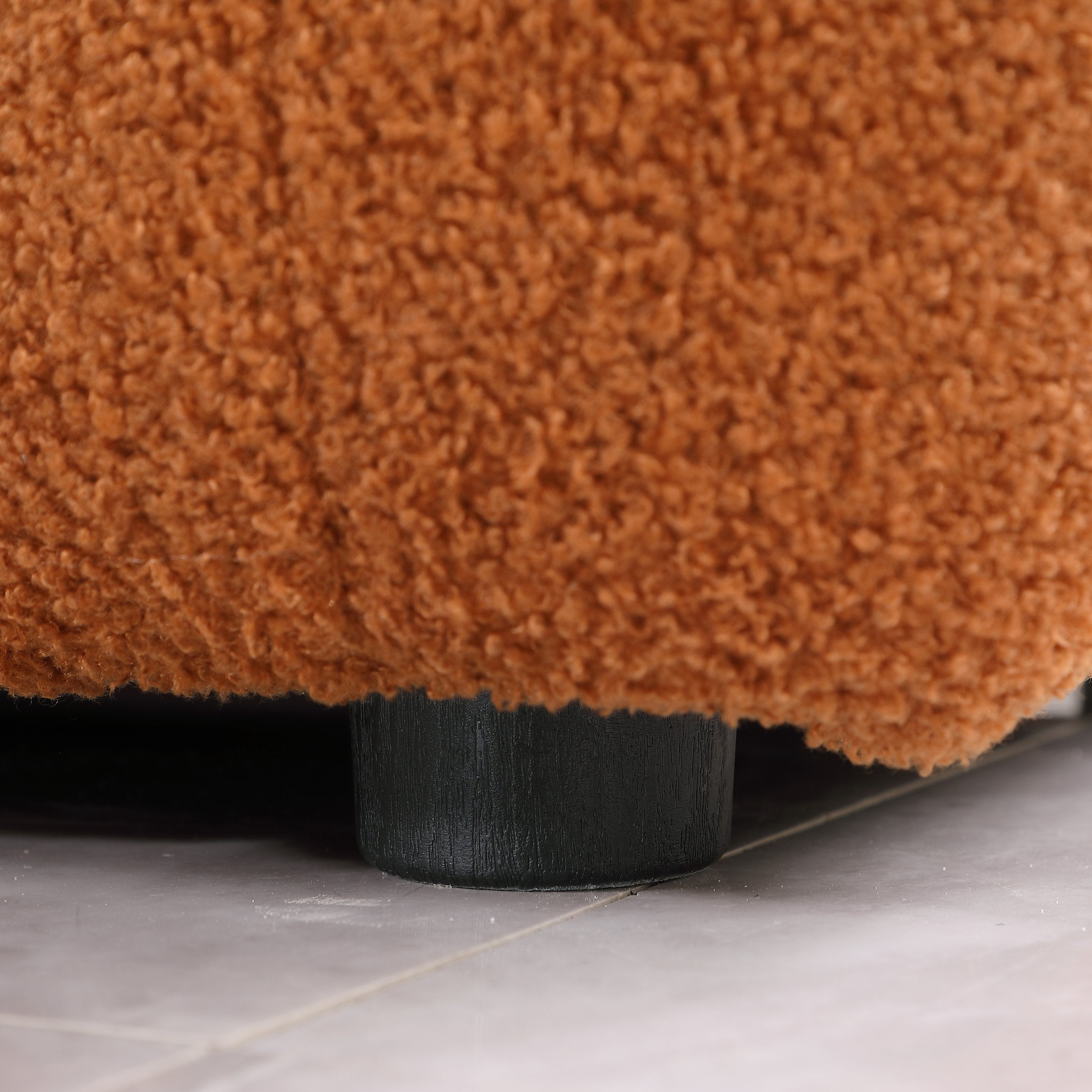 - Plush boucle upholstery in light brown for a soft, textured appearance that hides wear and adds visual warmth