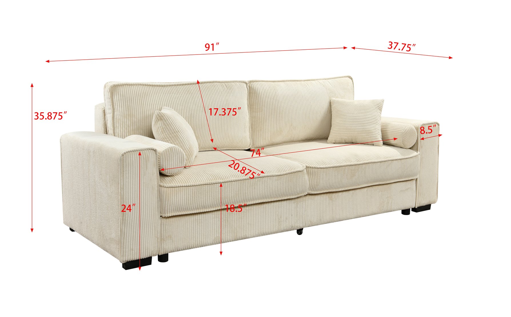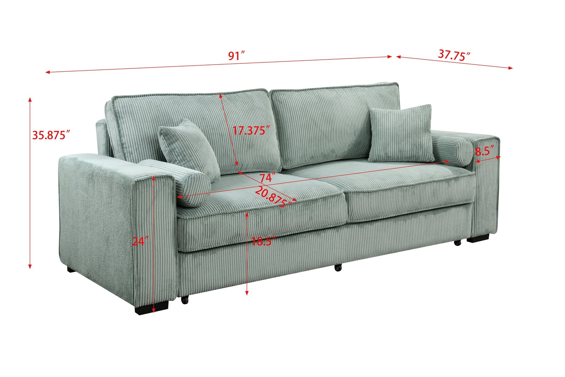 - Convertible Design: Smooth pull-out mechanism with rollers converts the sofa into a sleeper quickly and effortlessly—no tools required.