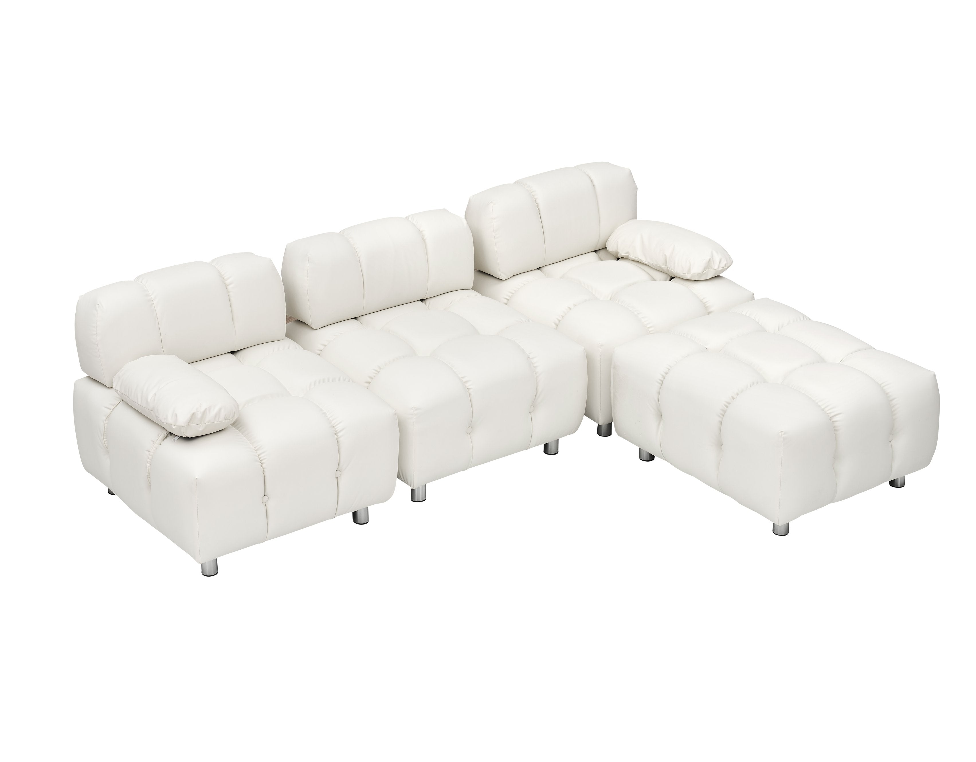 Upgrade your living space with this sleek, space-saving white sofa — engineered for modern apartments and bedrooms where style and durability matter. Upholstered in easy-care leathaire and supported by metal legs, it resists water, stains, and pet scratches while offering comfortable seating for up to four people and robust support for everyday use.