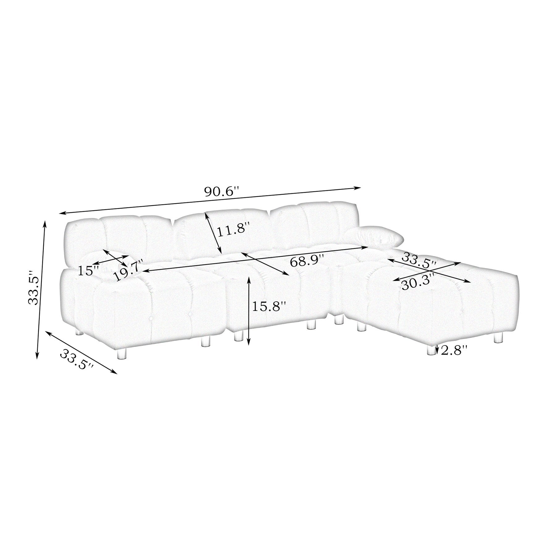 - Product dimensions (prominent): 90.60" L x 33.50" W x 27.56" H (also listed as 33.07 L x 29.92 W x 14.56 H in some packaging materials — please verify which dimension set applies to your shipment)