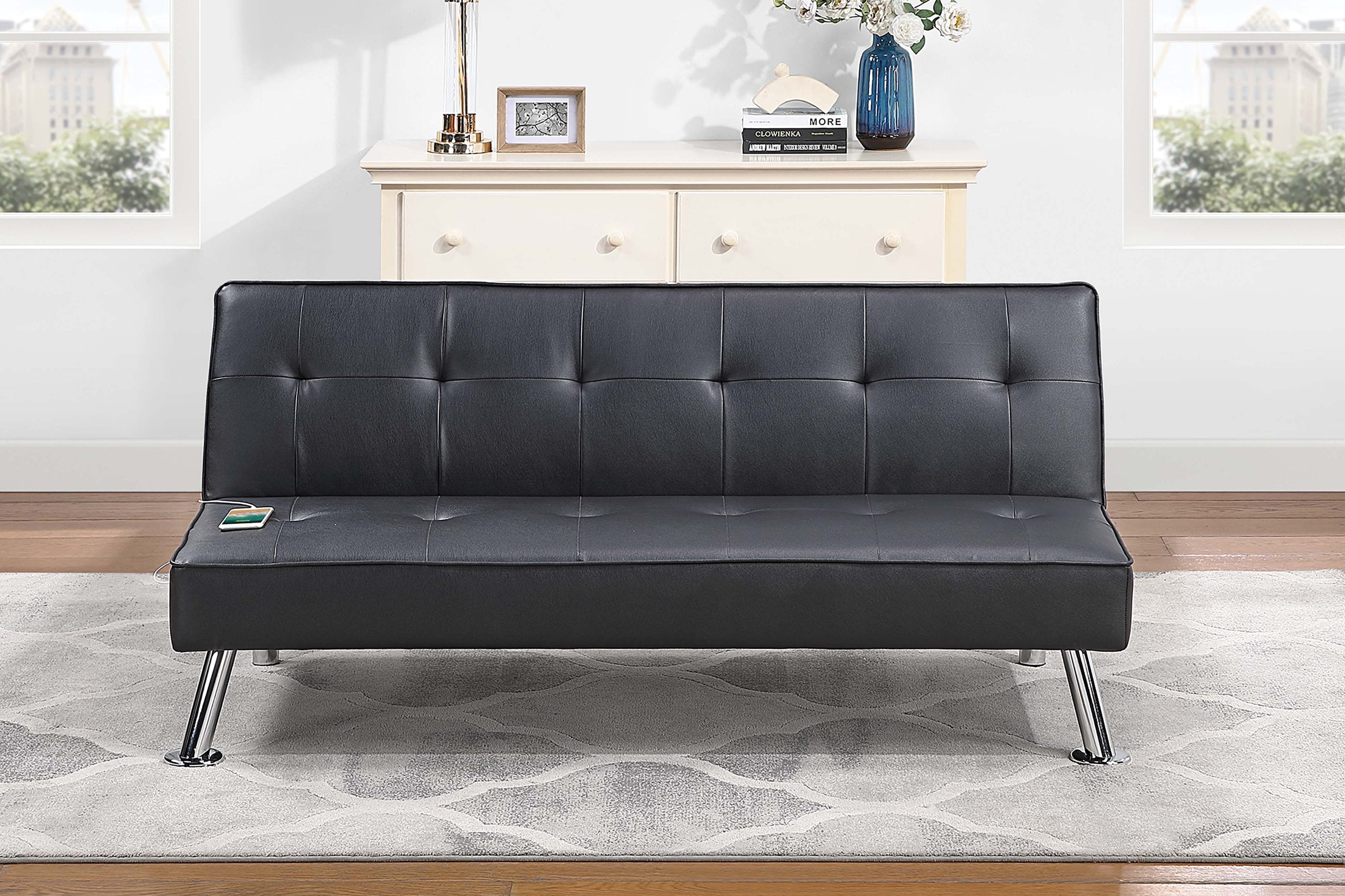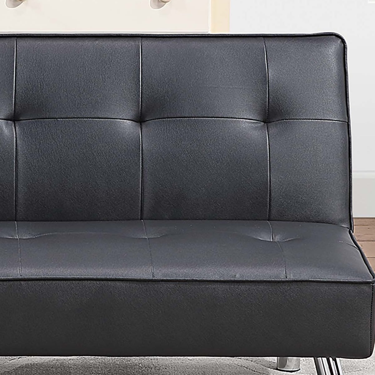 Turn any room into a stylish, multifunctional space with this black faux leather adjustable sofa—designed for comfort, convenience and contemporary appeal. Plush tufted upholstery and clean lines create a modern focal point, while the convertible design and built-in USB port make it ideal for living rooms, home offices or guest rooms. Durable metal legs and quality construction ensure reliable support, and simple assembly gets it ready for use quickly.