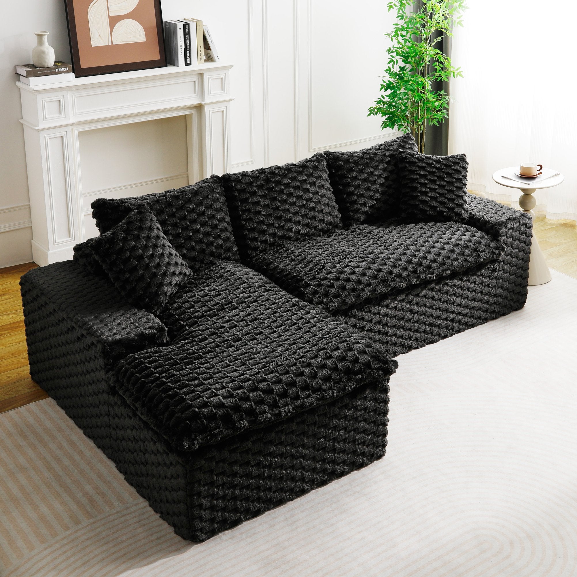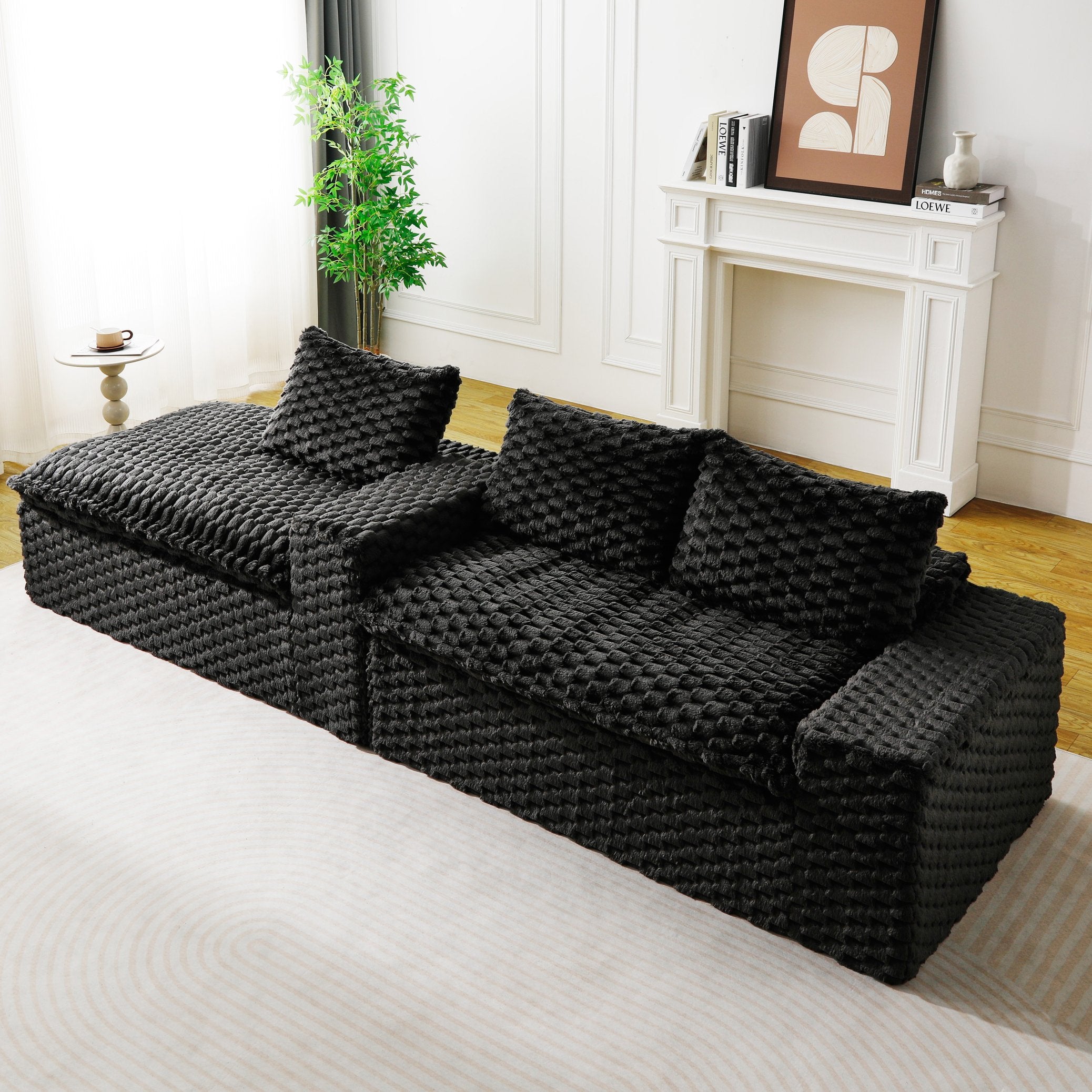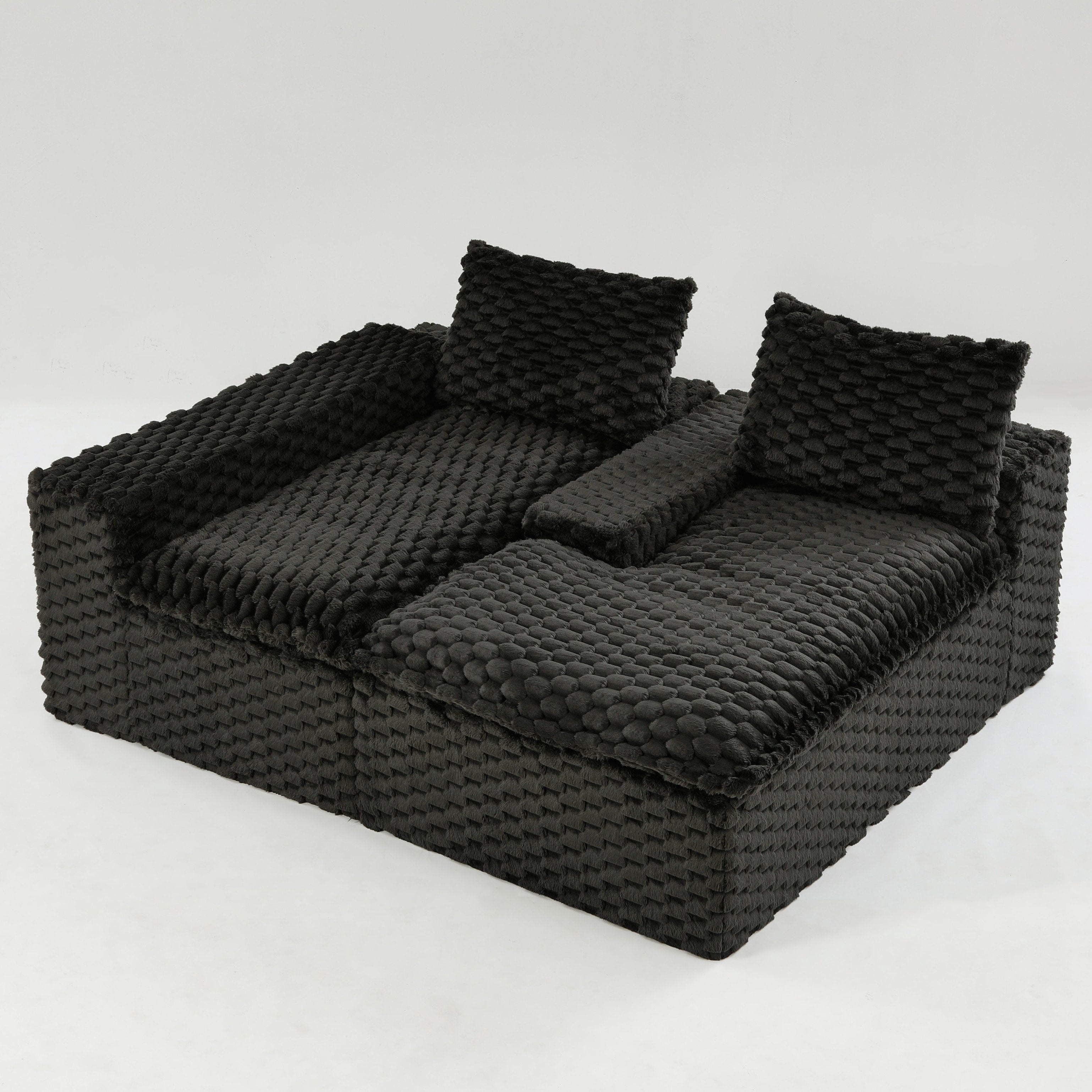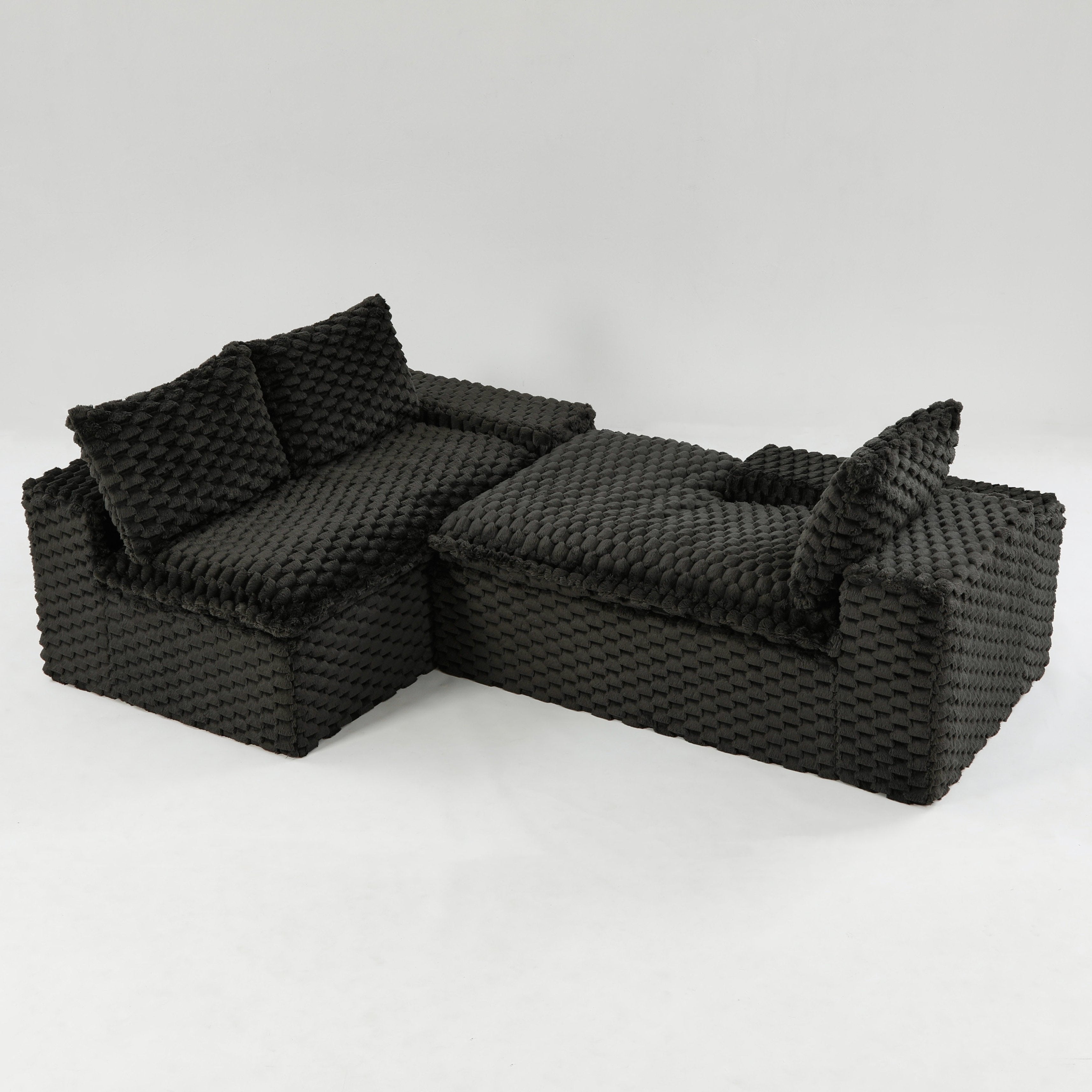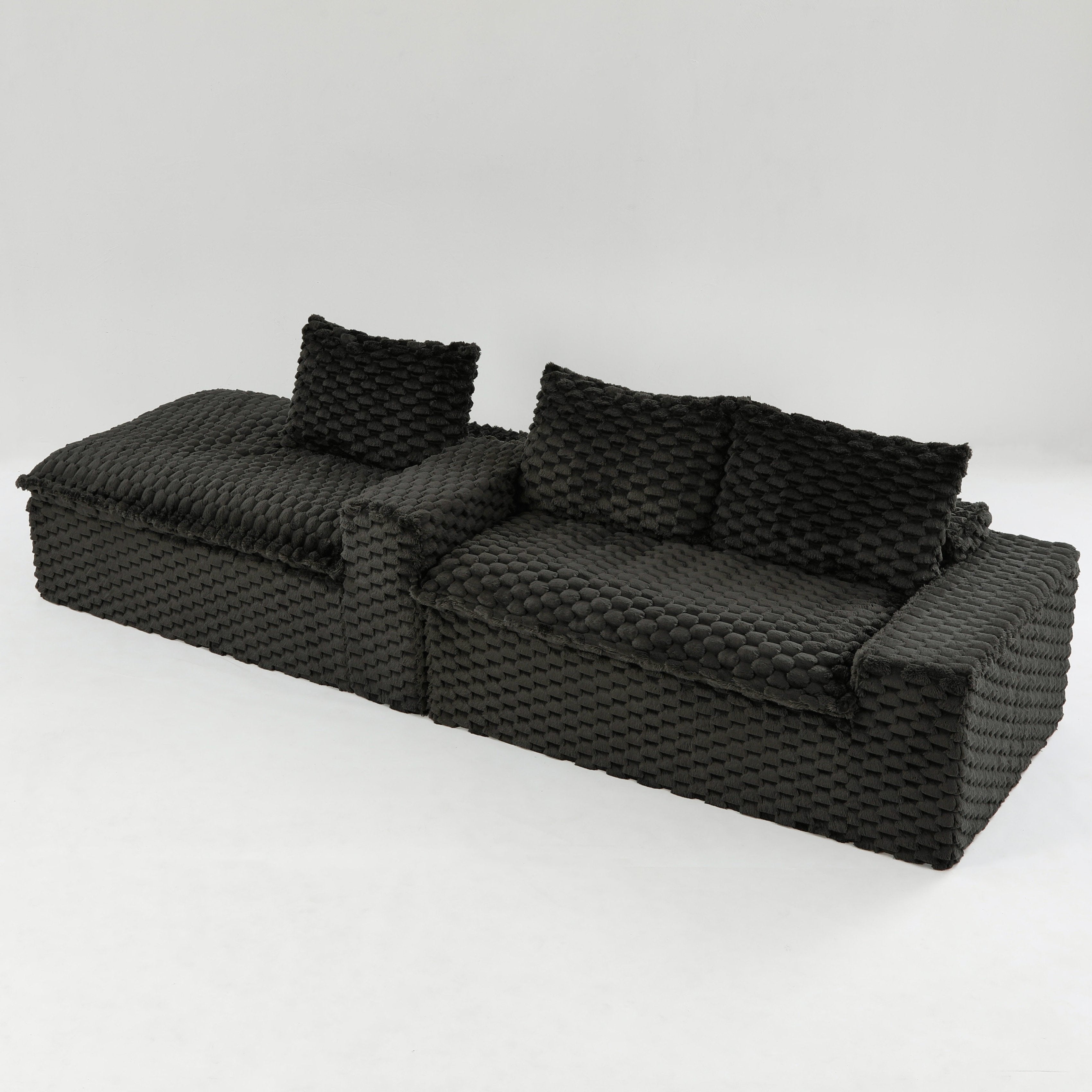 Transform any living space with the Black Turtle Velvet Versatile Sofa — a convertible, plush reclining lounger designed for comfort, flexibility, and modern living. Soft turtle-fleece upholstery and sponge-filled cushions deliver inviting support, while the modular design switches easily between an L-shape with left chaise lounge, face-to-face seating, and a straight sofa layout to suit lounging, entertaining, or working from home. Thoughtfully built for small apartments and multifunctional rooms, this sofa combines cozy texture with practical features and straightforward assembly.