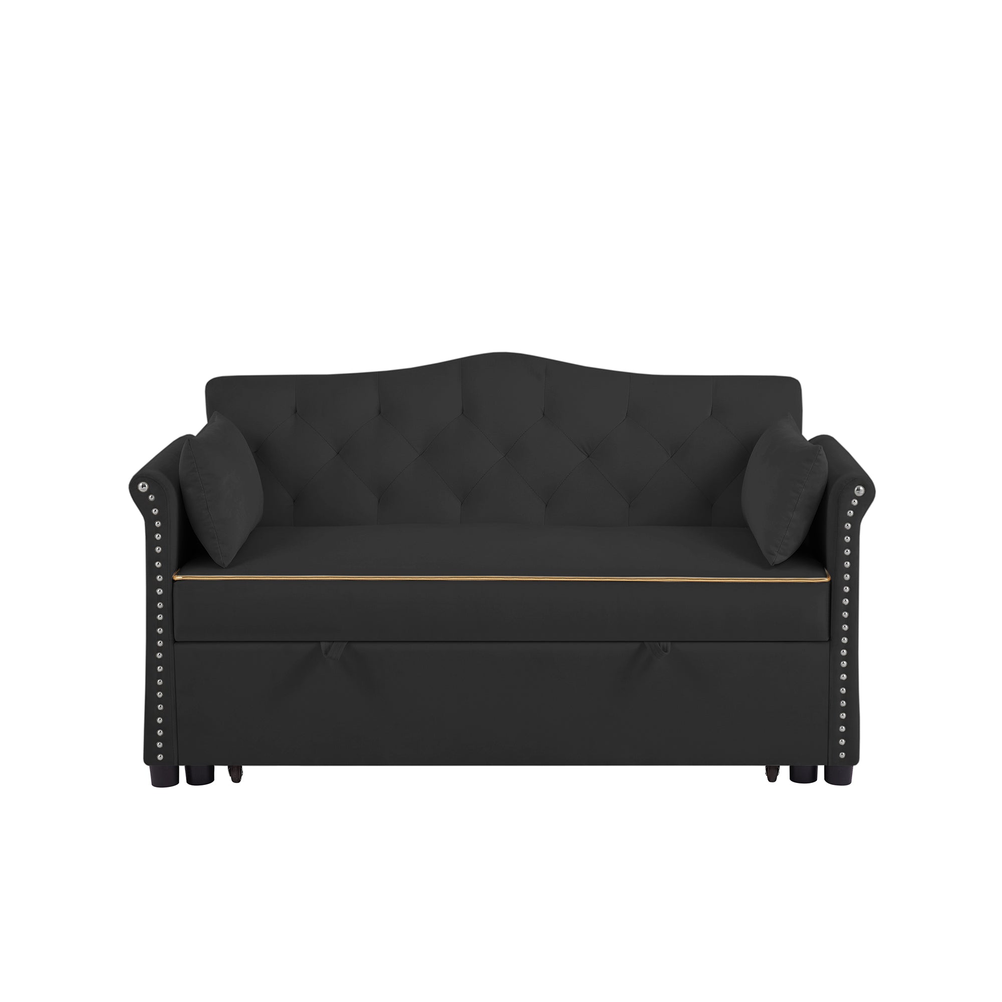 A sleek and versatile solution for small spaces, this Black Velvet Sleeper Sofa Bed combines modern style with practical functionality. Upholstered in soft black velvet and built on a sturdy wood frame, it transitions easily from comfortable seating to a compact sleeping surface—ideal for studio apartments, guest rooms, or home offices that double as guest accommodations.