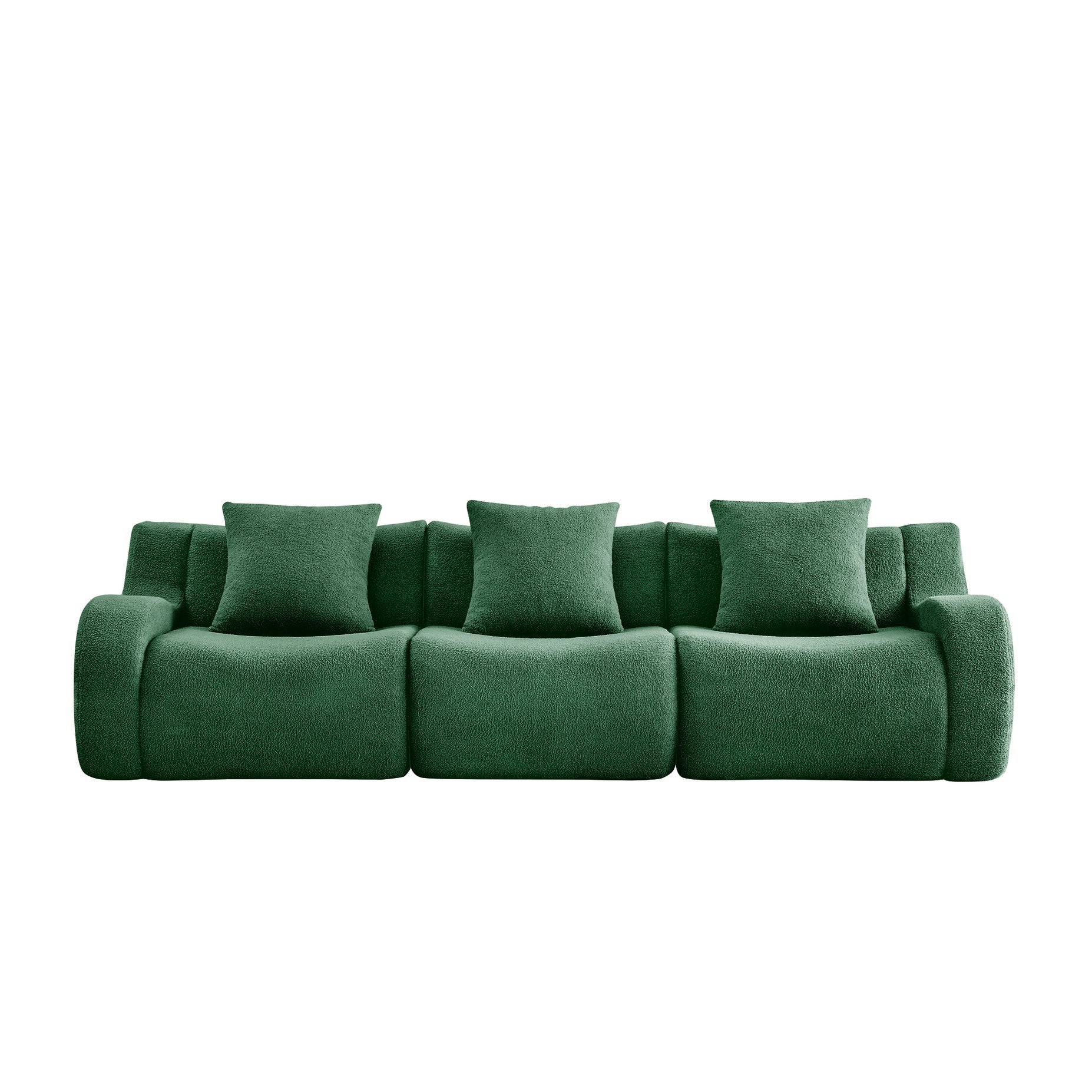 Sink into effortless comfort with this 3-seat boneless sofa wrapped in plush teddy fabric—designed for flexible living spaces like living rooms, bedrooms, and cozy reading nooks. With a streamlined silhouette, curved armrests and a high-density sponge core, it delivers supportive comfort and a soft, durable surface that resists wear and wrinkles. Ready to use right out of the box and built with a non-slip base for stability, this sofa blends convenience with contemporary style.
