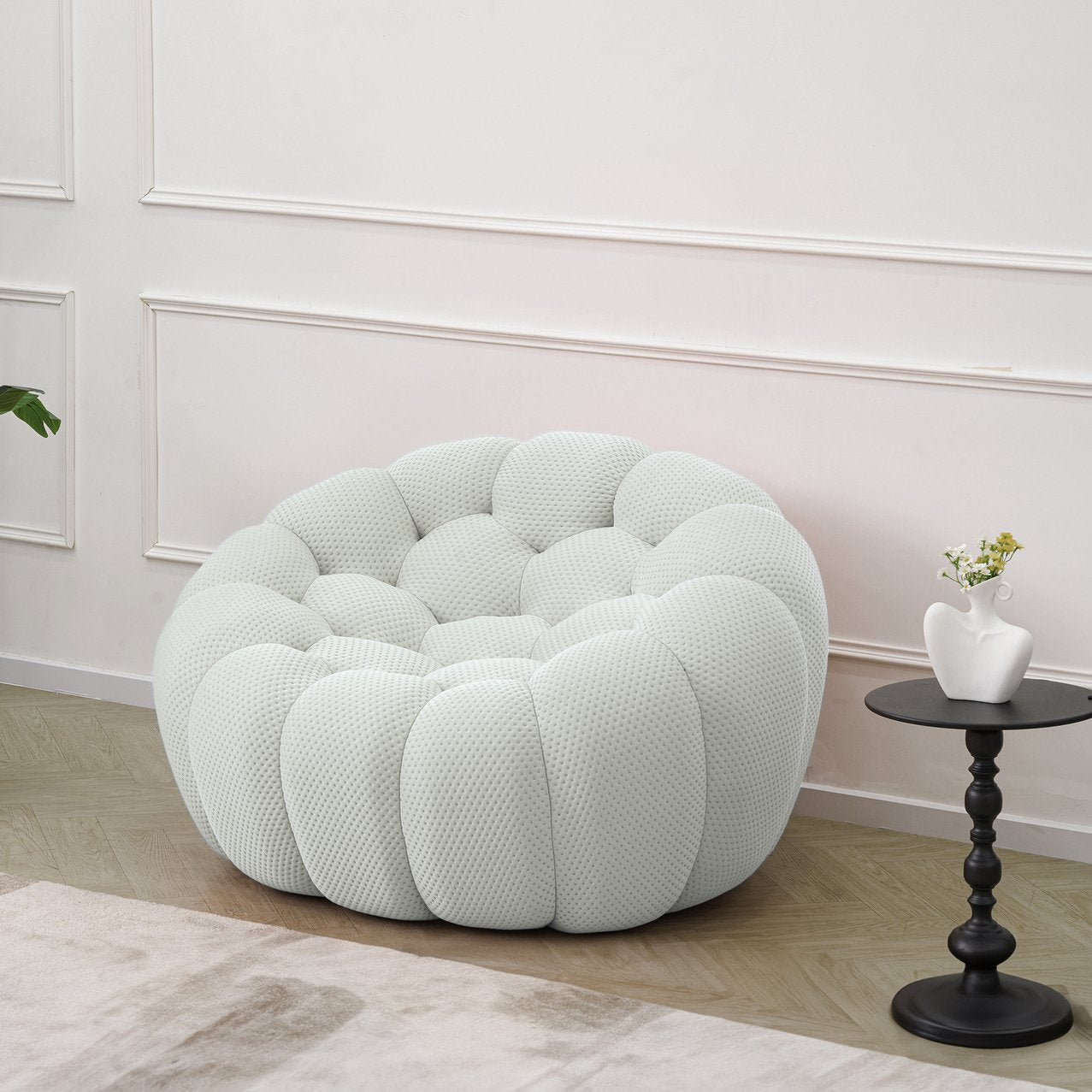 Inspired by the gentle curves of the ocean, this modular armless seat blends playful, organic design with practical comfort—perfect as a standalone lounge piece or combined into a larger sectional. Its soft, rounded silhouette, breathable 3D-knit upholstery, and high-density foam core deliver a supportive yet cozy seat that adapts to everyday living and family life.