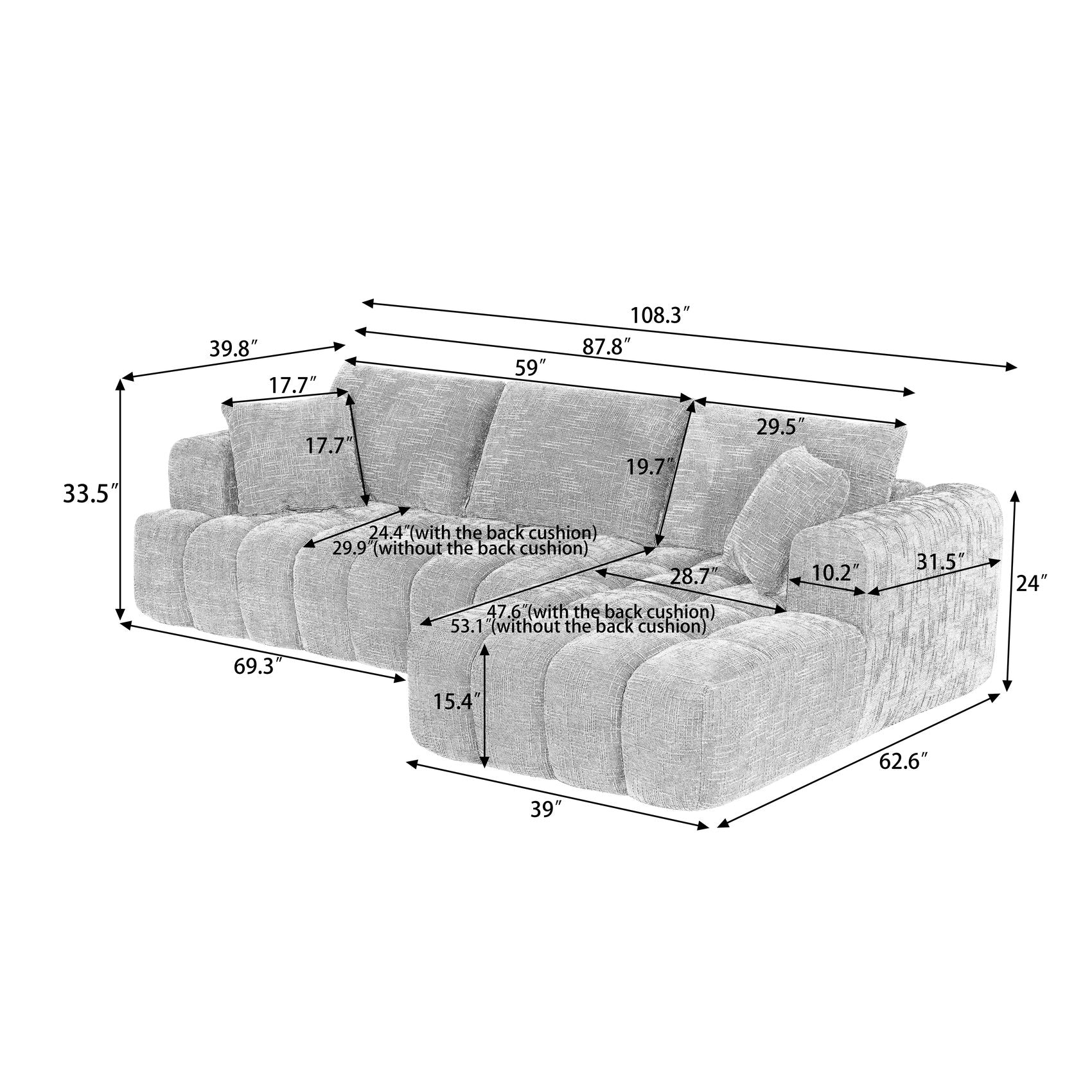 - Material: Crafted from high-quality chenille fabric, this sectional sofa offers a soft and luxurious texture that enhances the comfort and elegance of any living space.