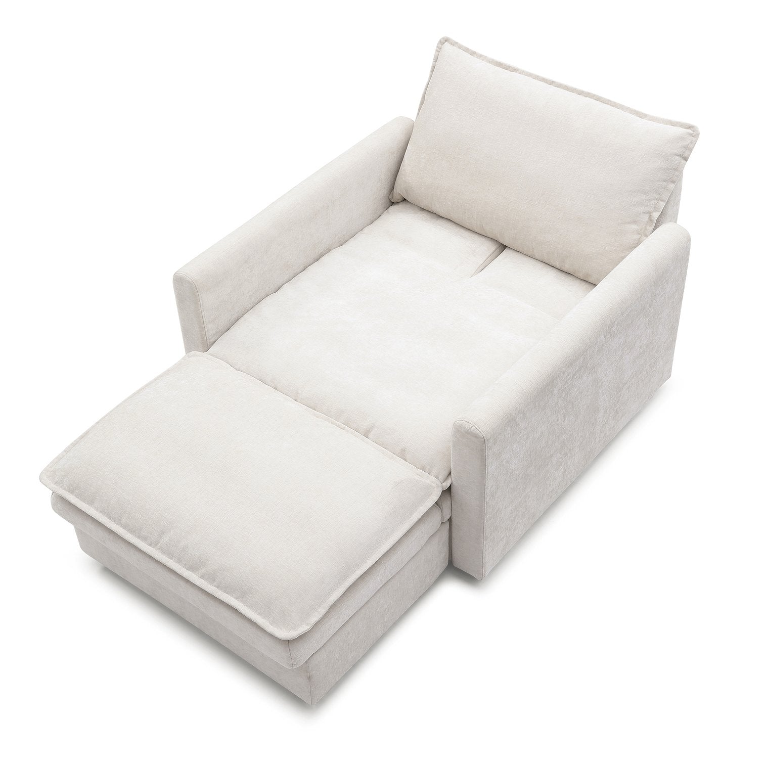 - Sink into the plush embrace of our single sofa, designed to mimic the weightless comfort of floating on air. The high-density chenille upholstery, paired with a soft, offers a buttery-soft touch—perfect for anyone seeking a cozy lounge spot. Whether curling up with a book or taking a nap, this small couch provides an indulgent lounging experience that combines comfort and style.