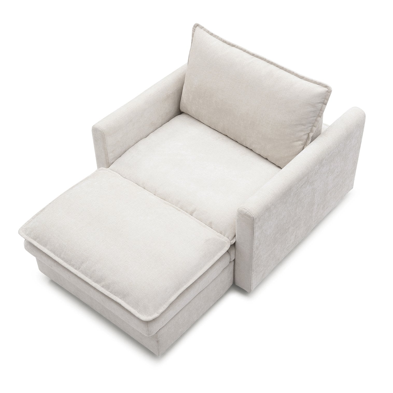 Sink into luxurious comfort with this modern chenille sofa and matching ottoman—designed as a compact, stylish lounge solution for reading, relaxing, or hosting an overnight guest. The plush high-density chenille upholstery delivers a buttery-soft feel and supportive seating, while the streamlined silhouette fits effortlessly into apartments, bedrooms, or cozy corners. Easy to maintain and built for daily use, this 1-seat accent sofa transforms small spaces into inviting retreats.
