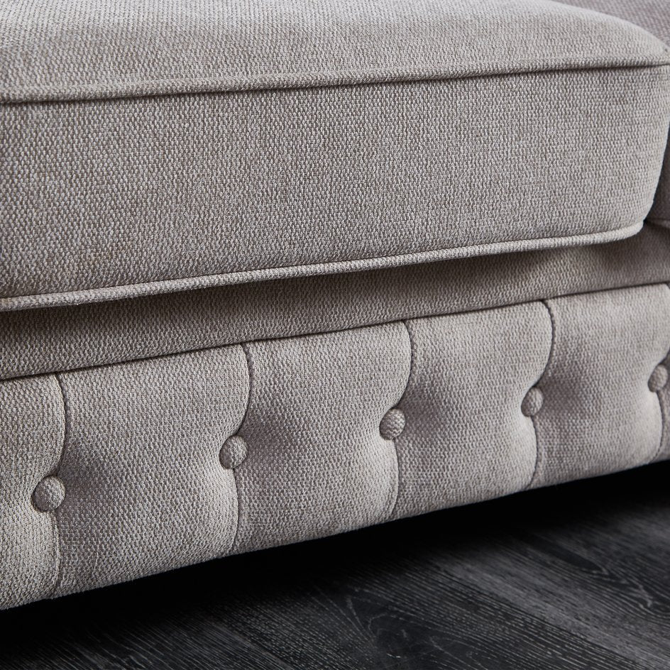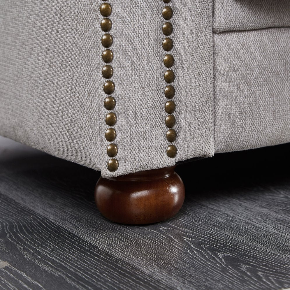Elevate your living space with this classic Chesterfield sofa in neutral beige linen — a timeless centerpiece that blends traditional tufted styling with durable, modern construction. Plush seating and a solid wood frame provide comfortable support for everyday use, while the linen upholstery and tapered wooden legs offer a refined, versatile look that suits both modern and transitional interiors.