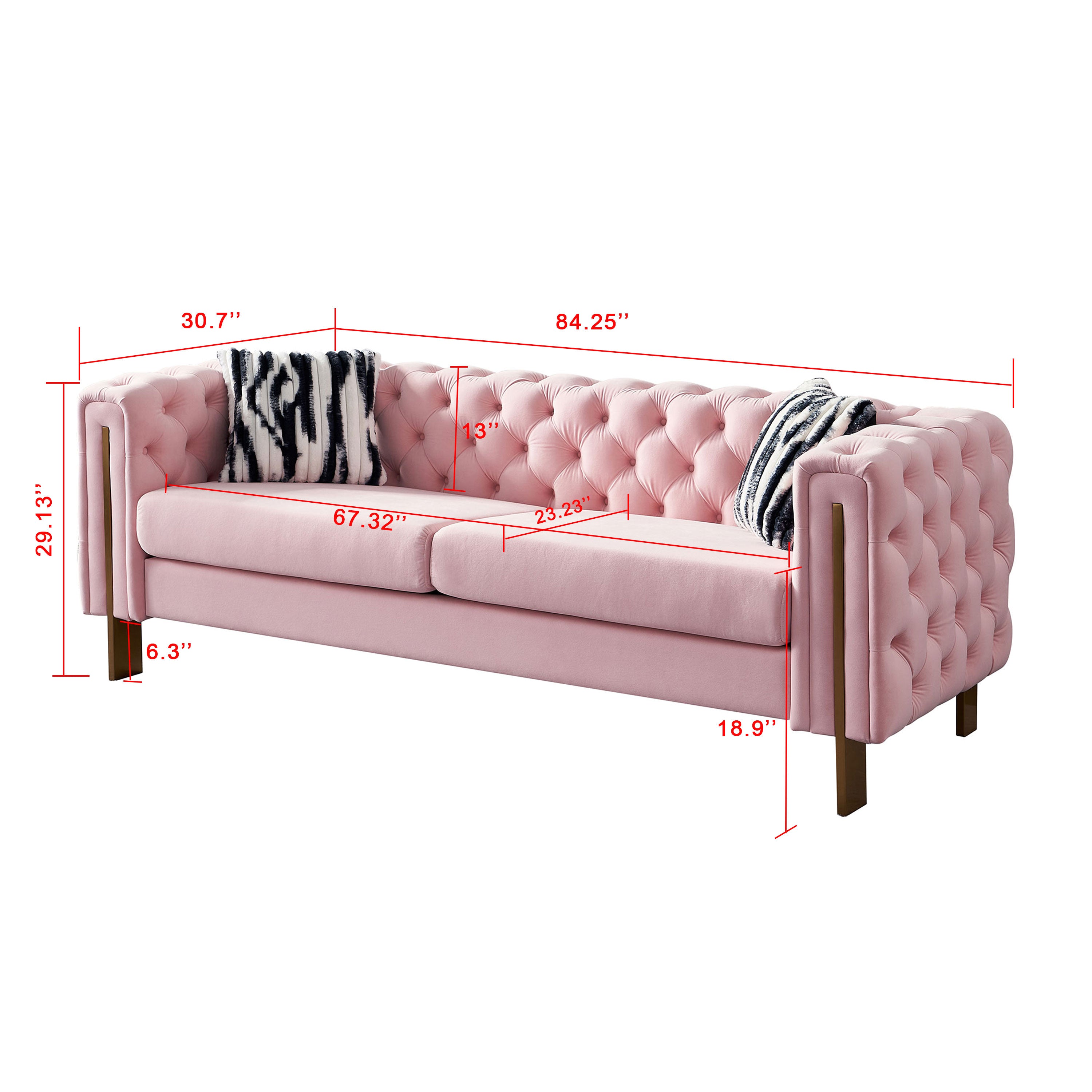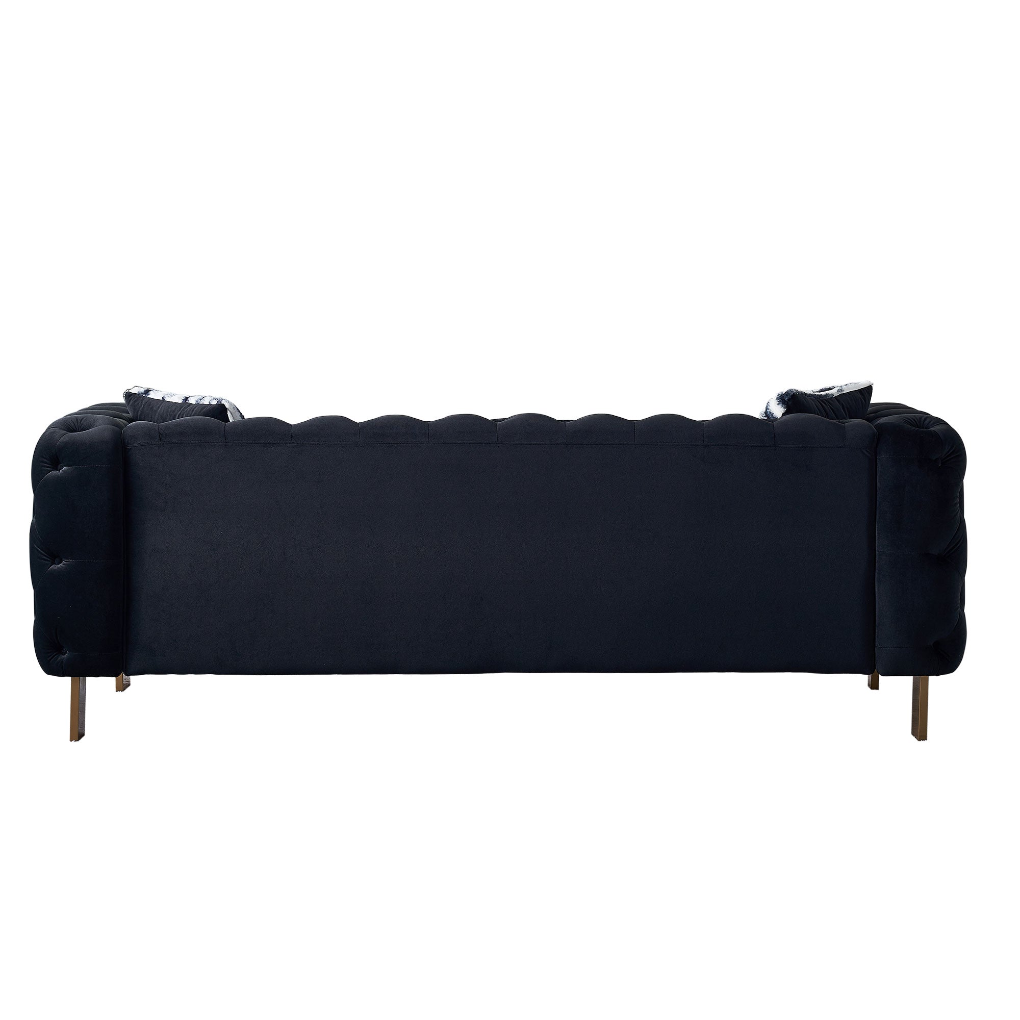 - This modern velvet sofa is with 2pcs Toss Pillows,the fabric material is very soft.