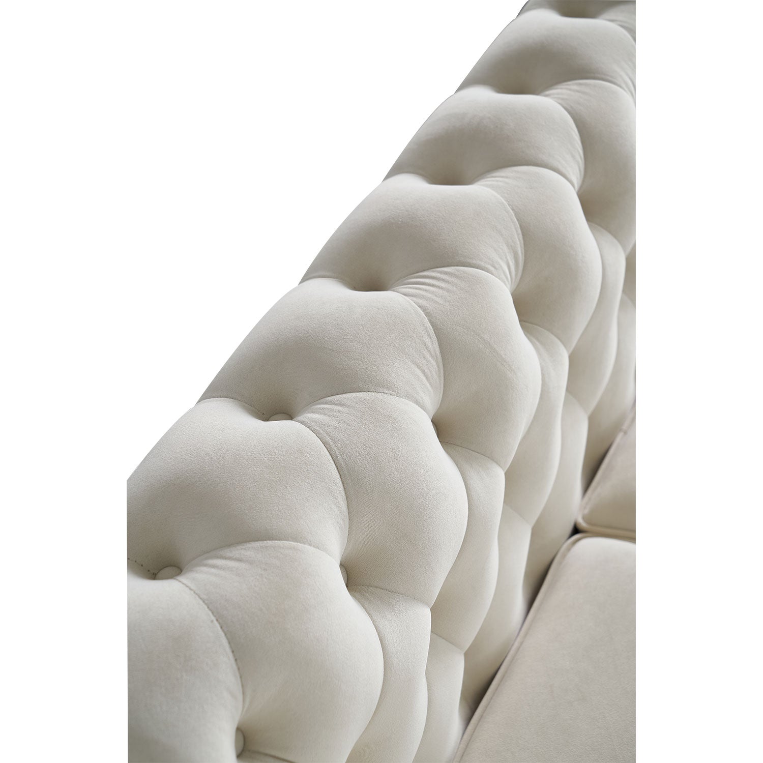 A refined take on a classic, this Chesterfield-style velvet sofa brings timeless elegance and modern detailing to your living room. With sumptuous upholstery, deep button tufting, and graceful rolled arms accented by gold trim, it creates a welcoming focal point that balances comfort and sophisticated style — ideal for lounging, entertaining, or elevating your interior décor.