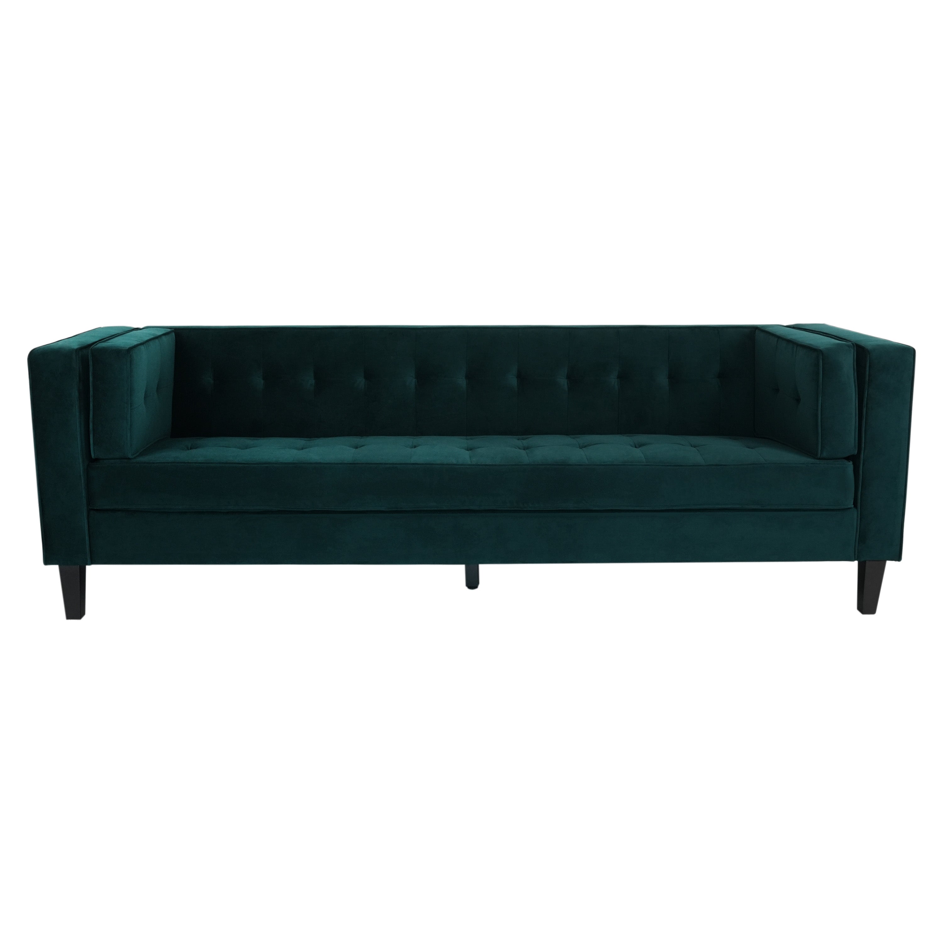 A refined blend of classic tufting and modern comfort, this three-seater velvet sofa in Frosty Green brings elegant color and lasting construction to your living room, office, or lounge. Upholstered in soft velvet with deep button tufting and a low-profile silhouette, it offers comfortable seating for three while making a sophisticated design statement.