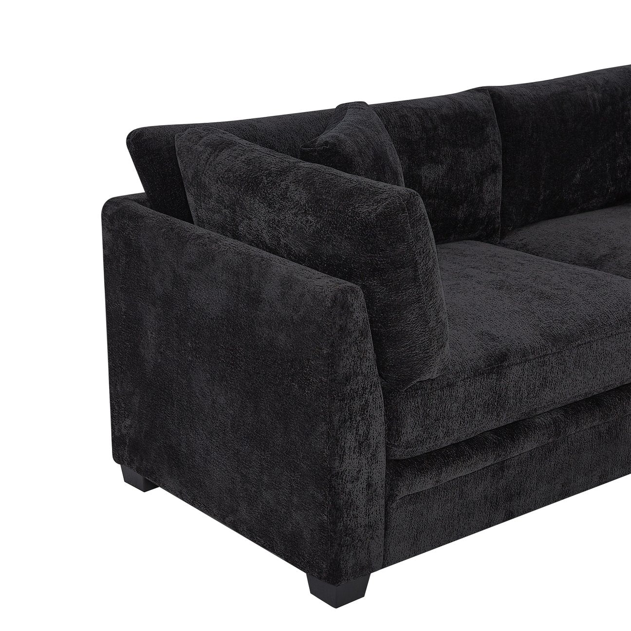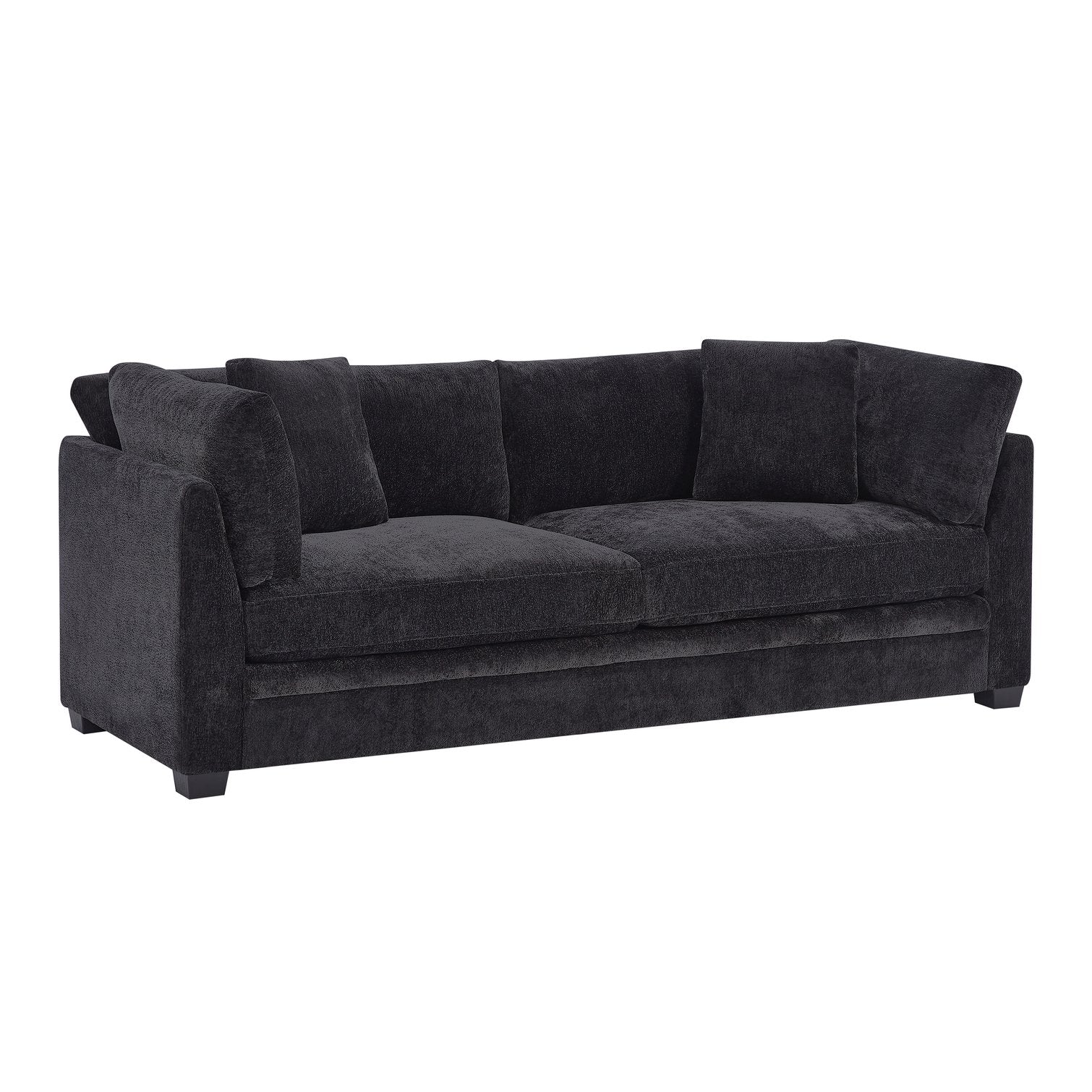 Sink into contemporary comfort with a sleek black chenille sofa designed to maximize seating and style in smaller spaces. Its modern flared arms and plush high-density cushions deliver both visual appeal and lasting comfort, while sturdy construction ensures reliable everyday use. Ideal for living rooms, studies, and cozy bedrooms, this sofa combines a low-profile silhouette with generous seating for relaxed lounging or entertaining.