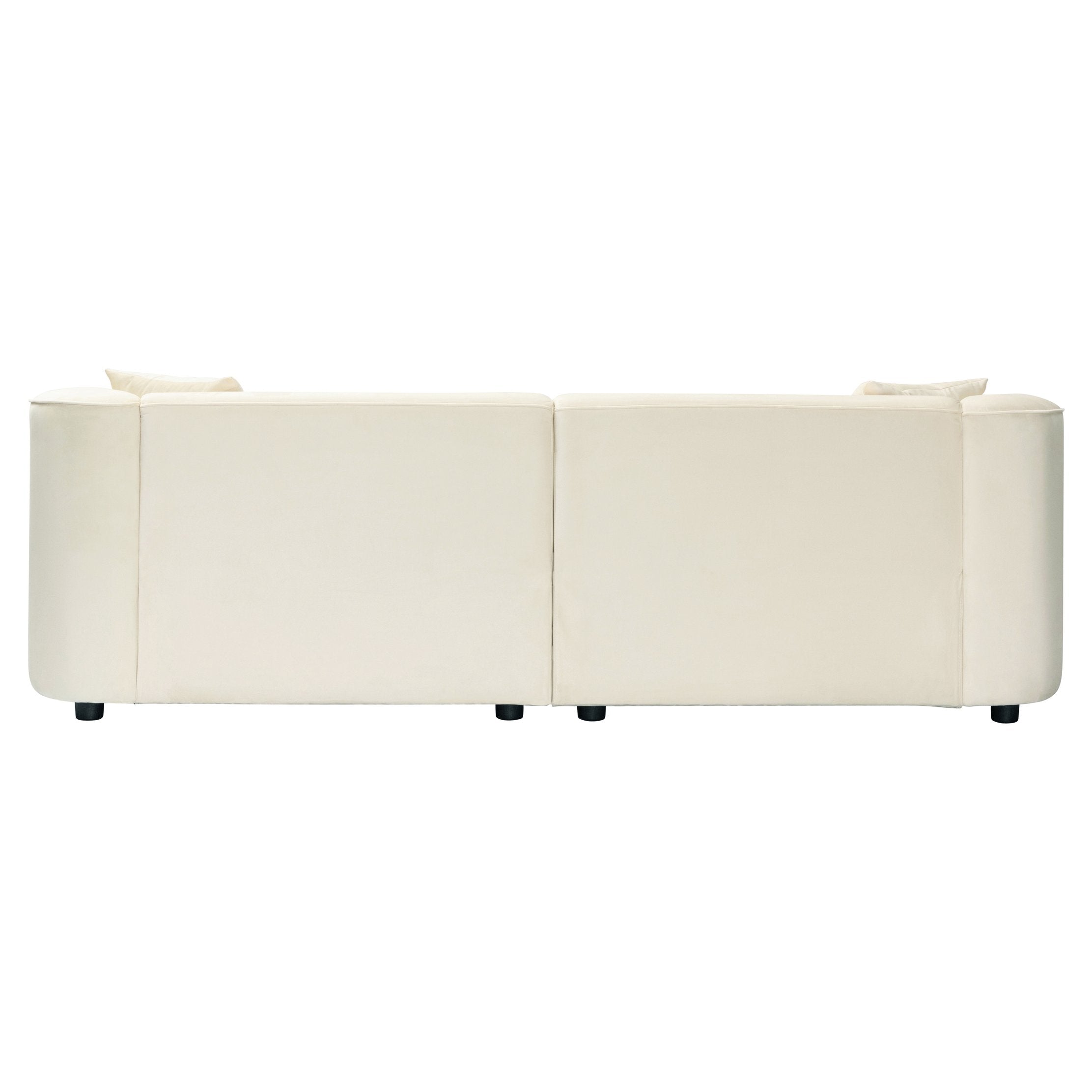 - Luxurious Velvet Upholstery: Upholstered in premium off-white velvet, the sofa features a plush and soft surface with a subtle sheen, adding a touch of elegance and sophistication. The velvet enhances the smooth curves of the sofa, elevating its clean, streamlined design while maintaining a chic and timeless aesthetic.