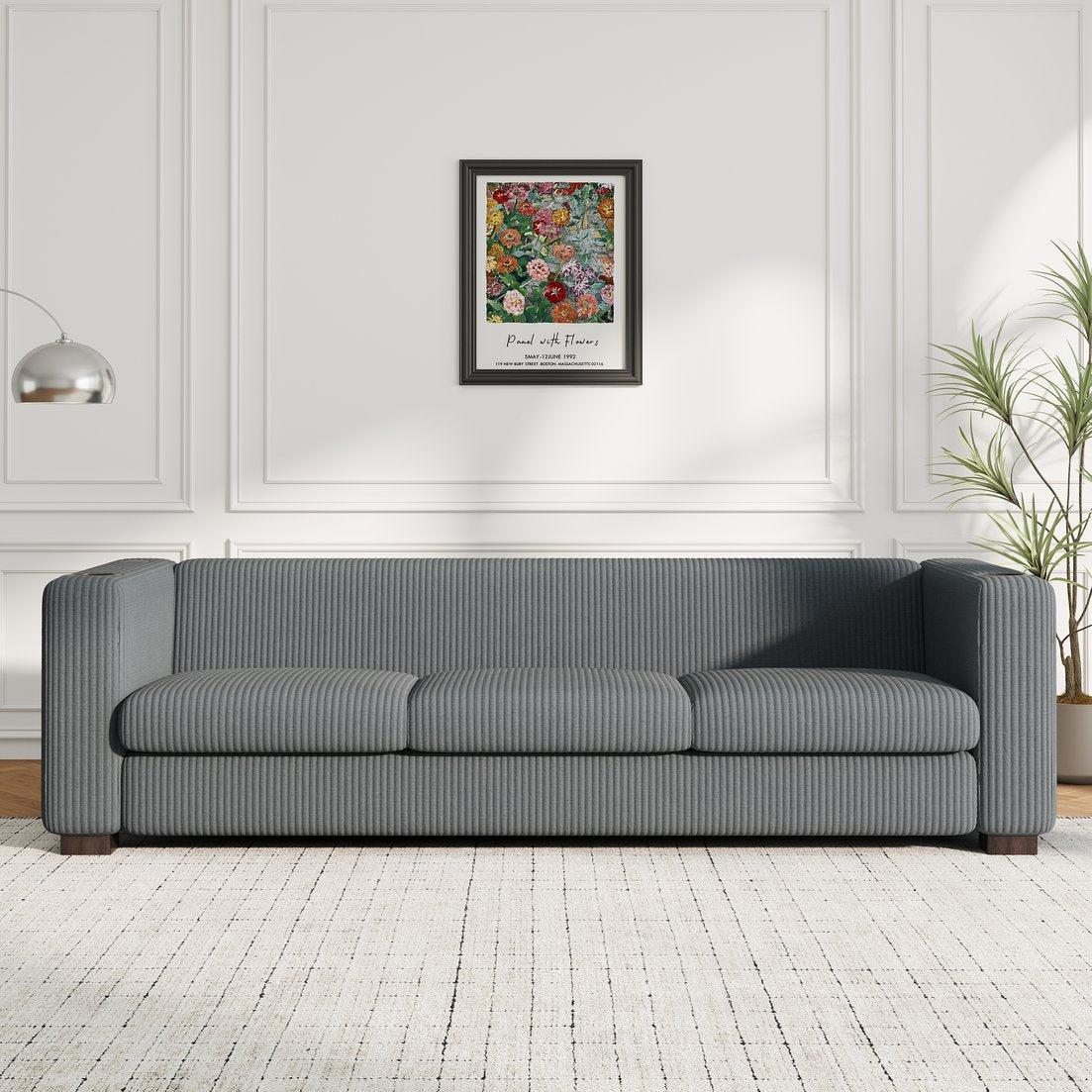 - PLUSH COMFORT:This is definitely a soft and comfortable sofa that you can stretch out and relax on after a long day. The deep seat structure and thick armrests support your body, while the soft fabric gives the sofa a unique skin-friendly texture.While the high-density foam cushions wrapped in plush padding ensure lasting comfort that maintains its shape over years of use.