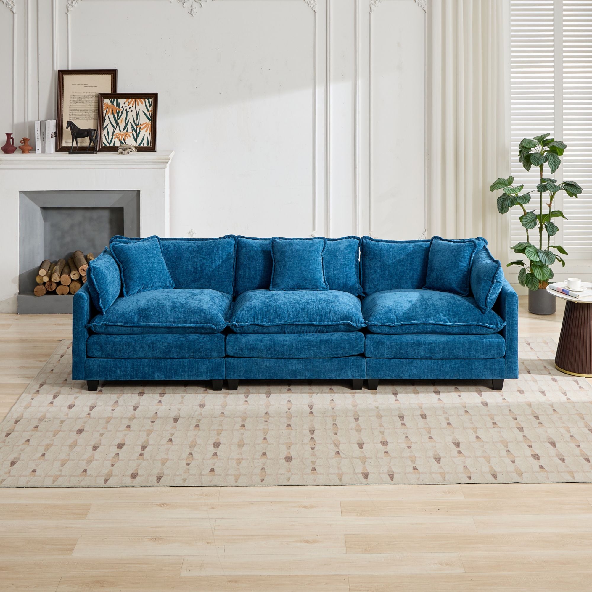 Sink into cloud-like comfort with this modern 3-seat modular sofa, designed to bring a cozy, stylish centerpiece to your living room, bedroom, or apartment. Upholstered in breathable chenille, it combines plush double-layer cushioning with an ergonomic silhouette to support your back and waist. Its modular construction lets you rearrange sections to suit different spaces and needs, while straightforward assembly gets you relaxing in about 30 minutes.