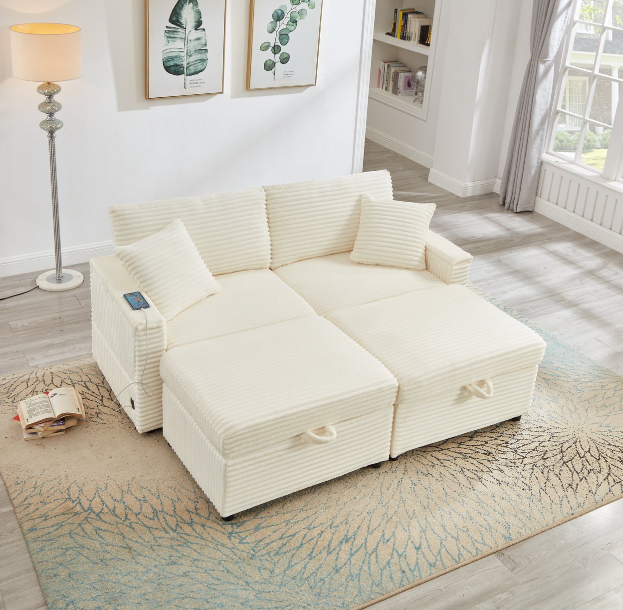 Sink into cloud-like comfort with this versatile corduroy chaise lounge set — designed for lounging, storage, and everyday living. Plush chenille upholstery and deep cushions create a welcoming retreat, while smart features like hidden storage, a lift-up armrest tabletop, and integrated USB charging keep your space organized and convenient. Ideal for family rooms, apartments, or media spaces, this piece blends cozy softness with thoughtful functionality.