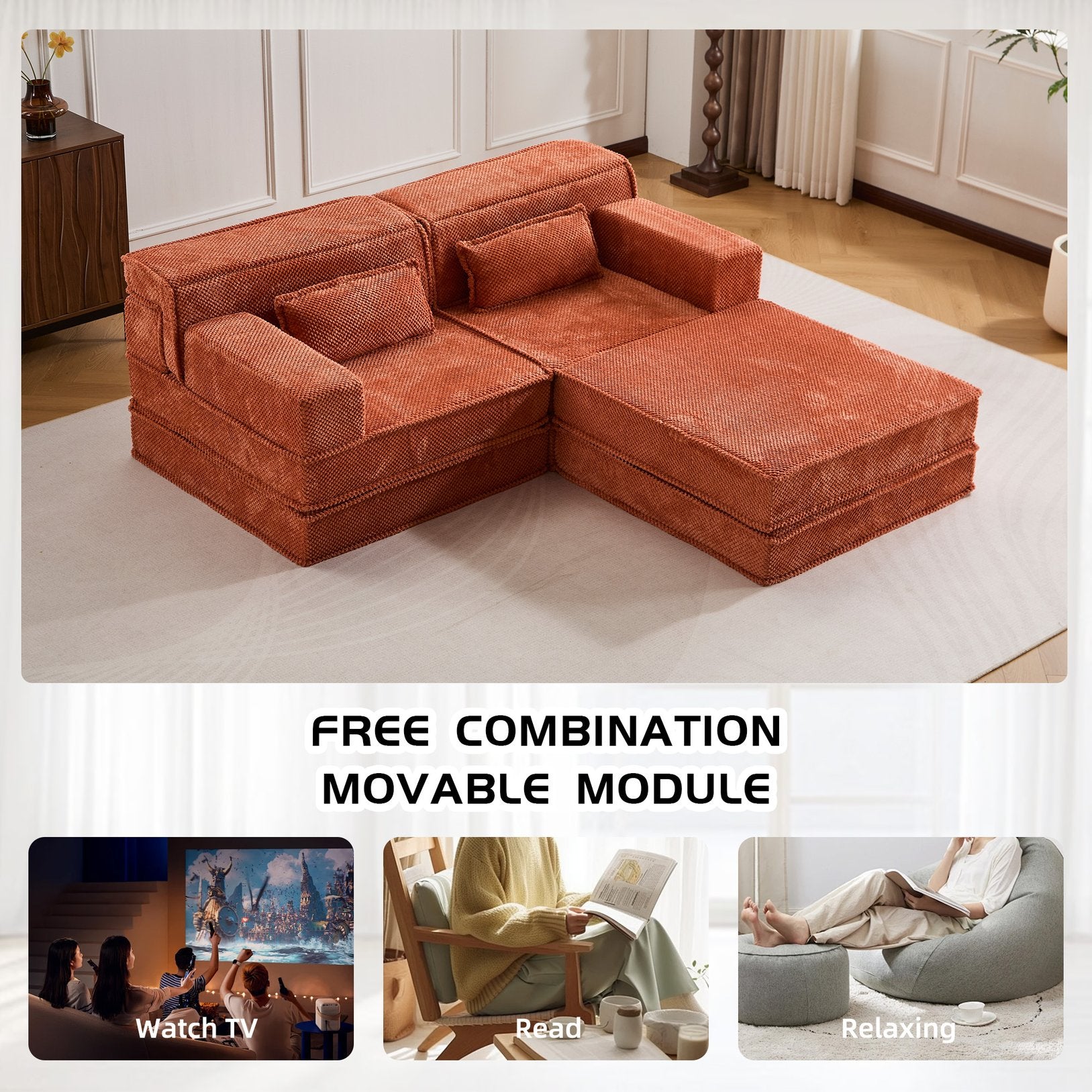 - 【No Assembly Required & Tips】The Convertible Modular Sectional mahjong sofa don't need to assemble. Tips: It takes time for the sofa to expand, Please unpack and wait 48-72 hours for full rebound.