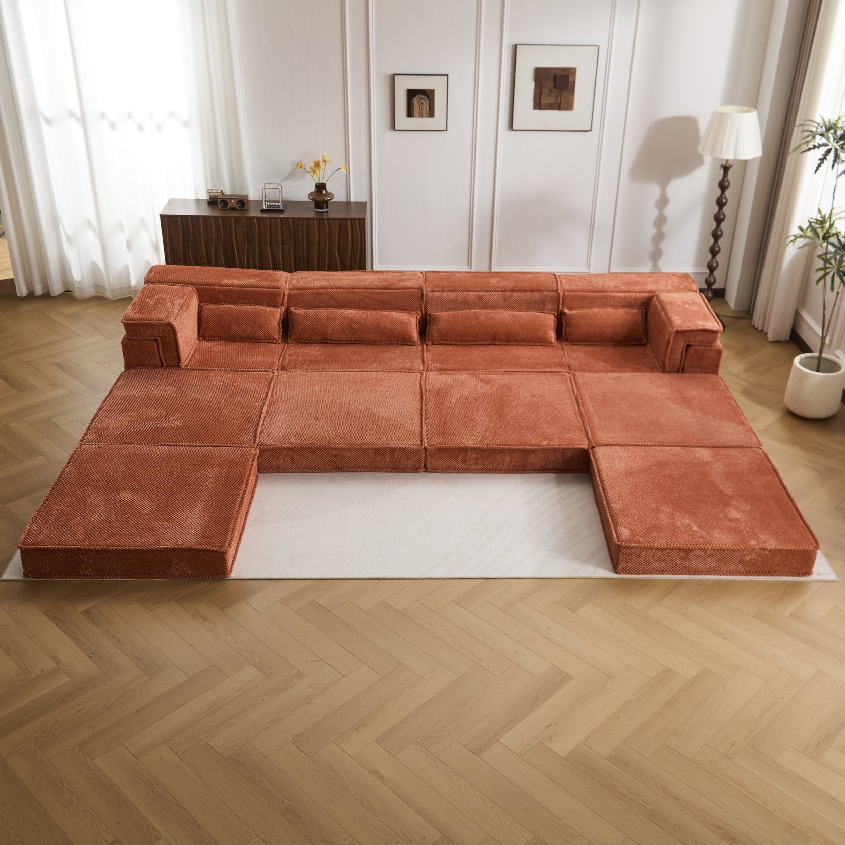 Sink into cozy versatility with this oversized, boneless modular sofa — a convertible mahjong-style floor sofa bed that adapts to your space and lifestyle. Wrapped in plush circle fleece and filled with high-resilience memory foam, it delivers cushioned support whether used as a sectional, loveseat, floor sofa, bed or ottoman set. No tools or assembly required: simply unpack, allow the foam to rebound, and arrange the pieces to suit your room.