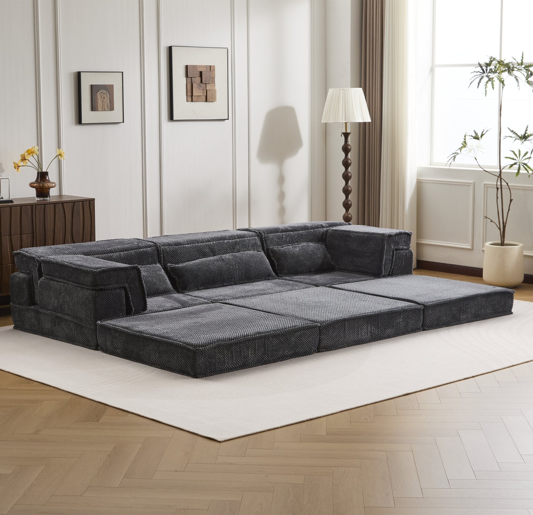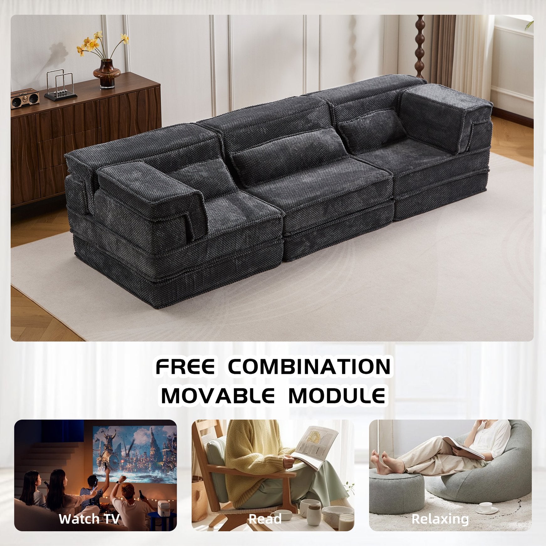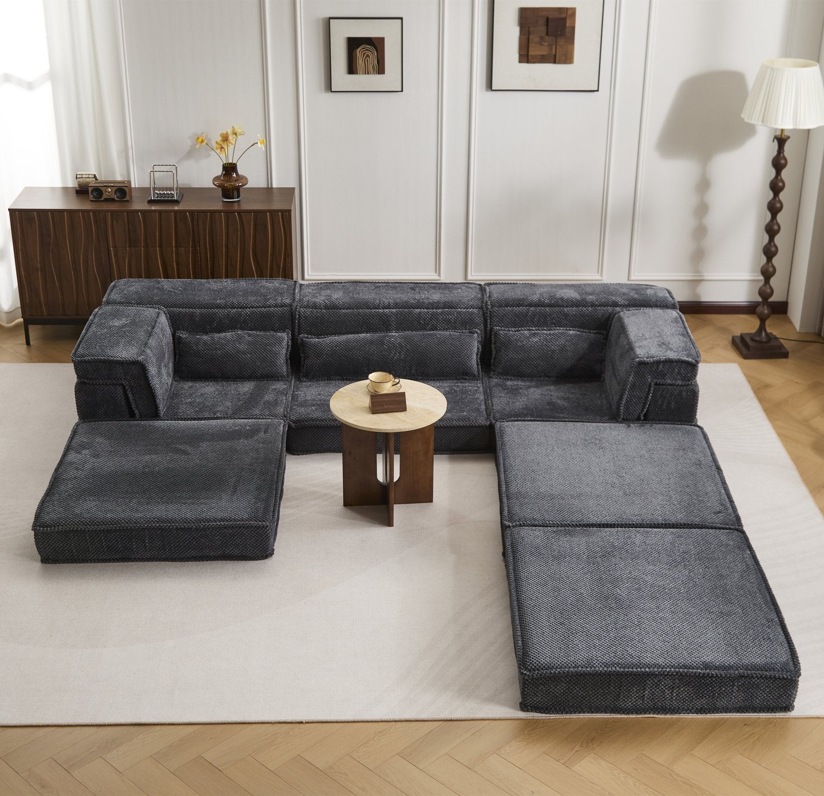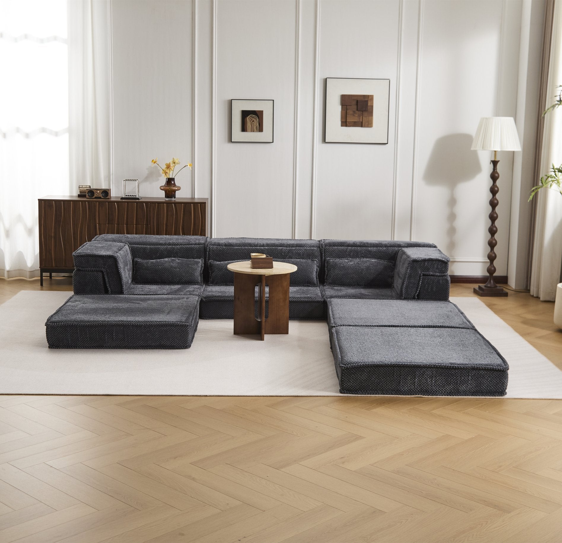 Sink into versatile comfort with this oversized, boneless modular sofa—designed for lounging, entertaining, and flexible living. Wrapped in soft circle fleece, filled with high-density memory foam, and ready to use right out of the box, this convertible sectional adapts to your space and lifestyle: configure it as a 3-seater, L-shaped sofa, loveseat, individual chairs, a floor bed, or mix-and-match ottomans for game nights, naps, and relaxed seating.