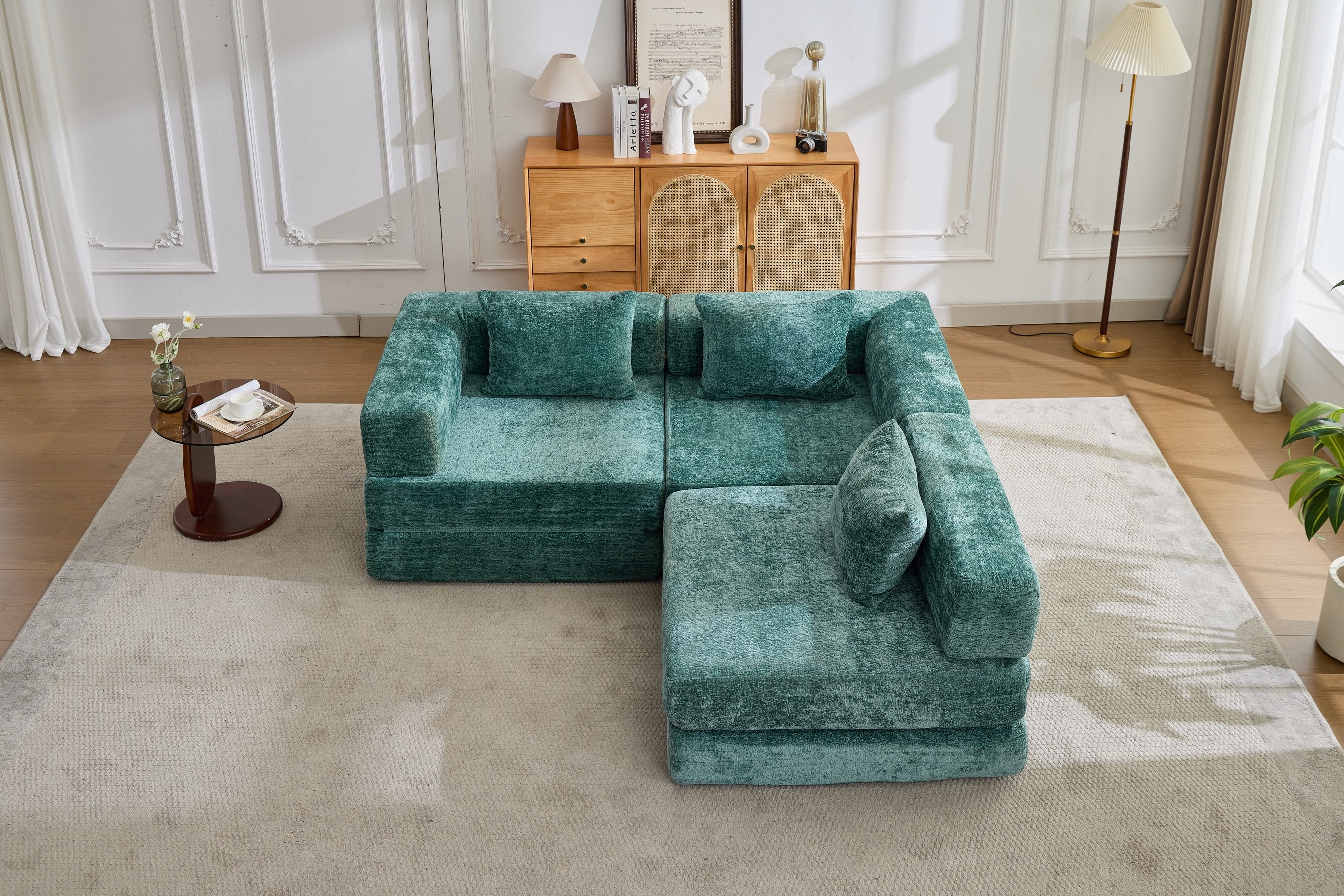 A versatile, space-saving convertible floor sofa crafted in soft chenille — this modular, no-assembly compression sofa easily transforms from a compact seating solution into a comfortable sleeper. Ideal for small apartments, guest rooms, dorms, or multi-use living areas, it combines breathable upholstery, durable construction, and flexible configurations so you can rearrange sections to suit lounging, socializing, or overnight guests.