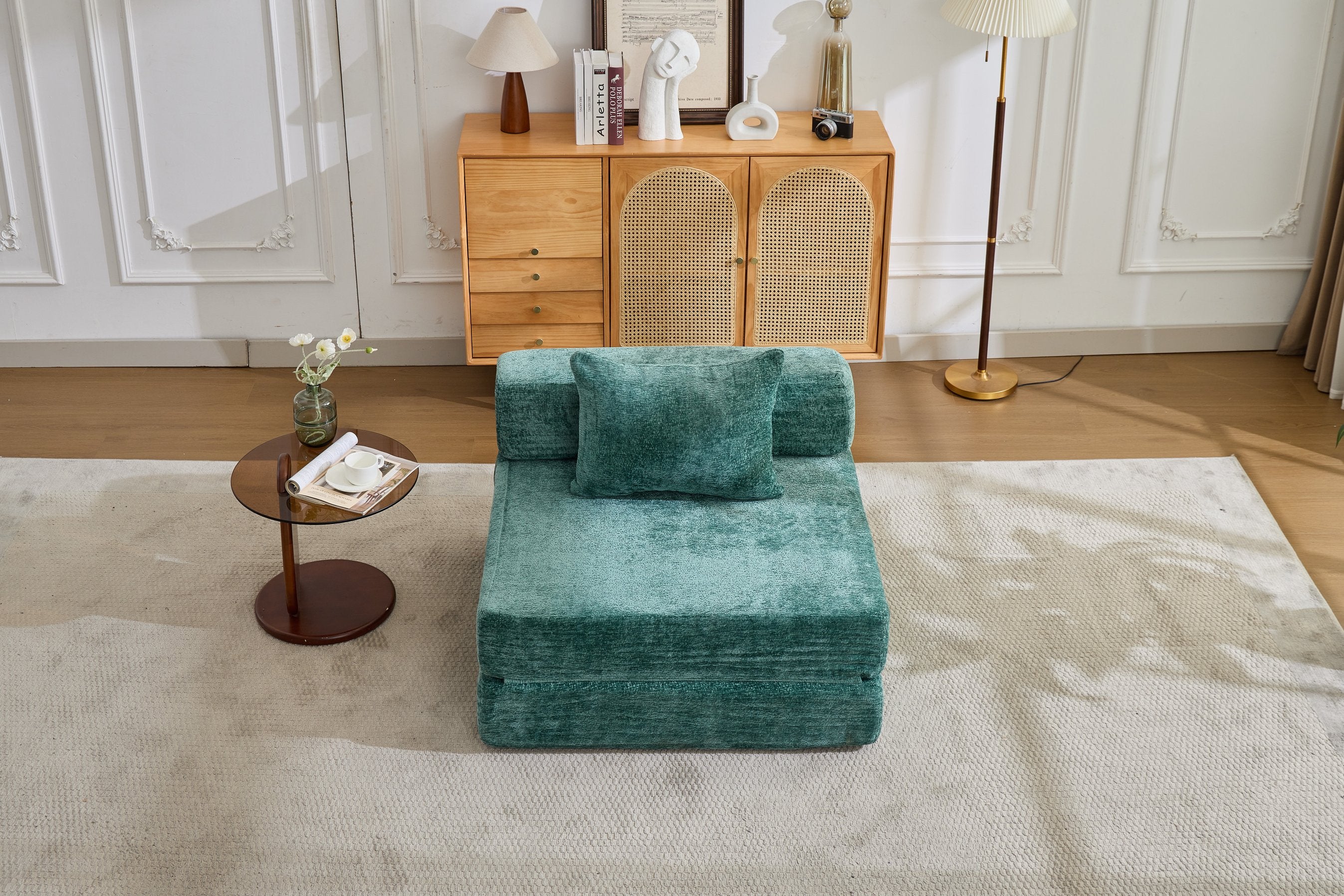 - Convertible foldable design: Easily converts between floor sofa and mattress by folding the side armrests or backrest for quick transformation from seating to sleeping.