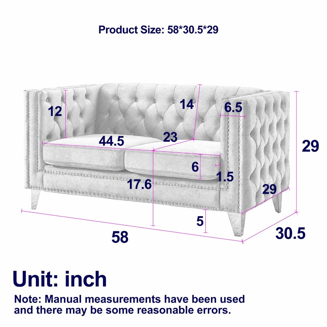 - Product type: Two-person (2-seater) velvet sofa, modern square-arm design with button tufting